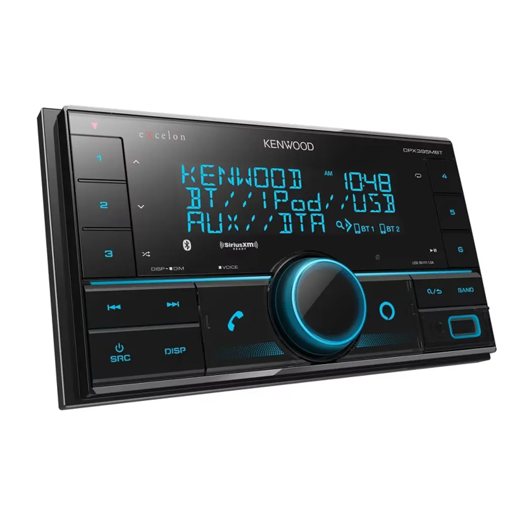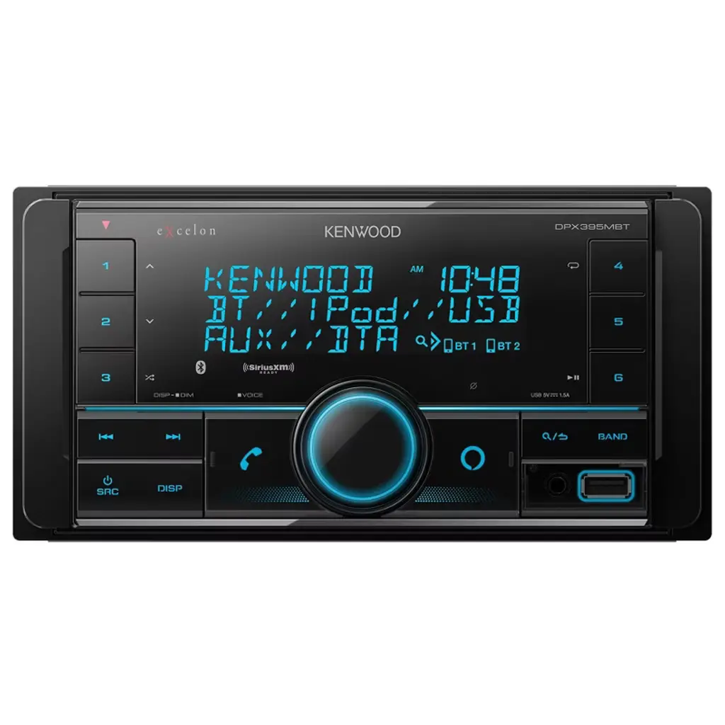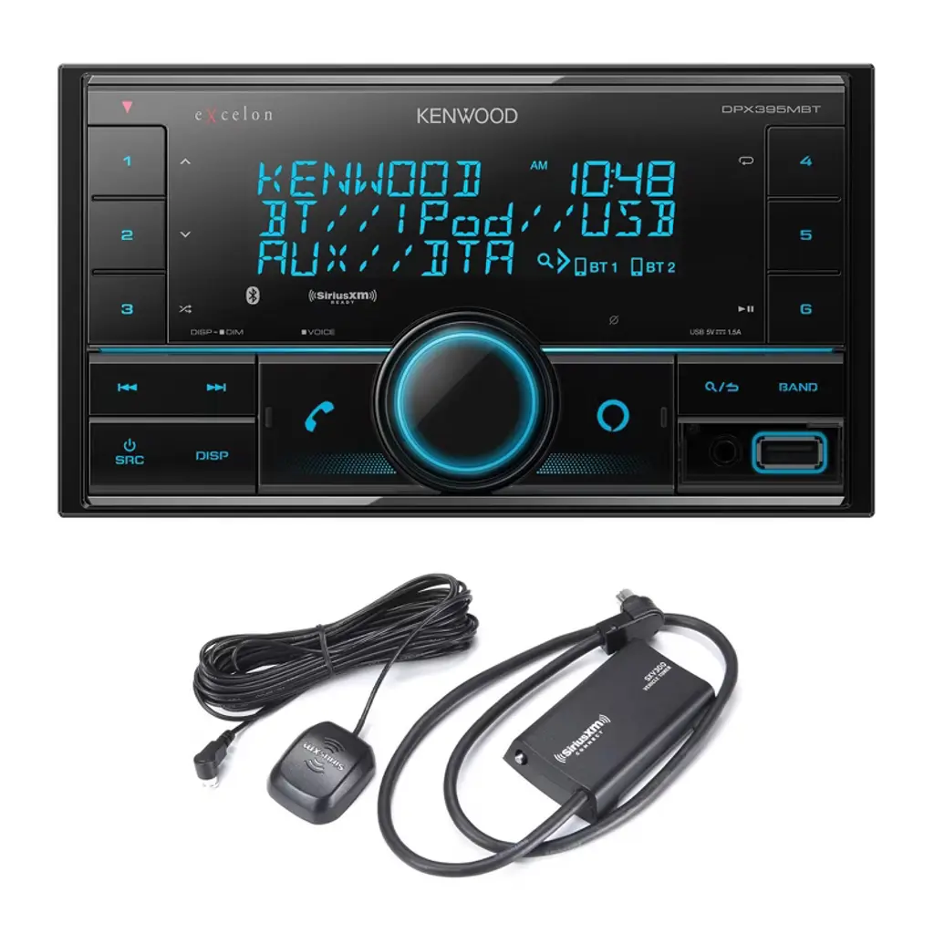 Kenwood DPX395MBT Bluetooth AUX and USB Double DIN CD receiver - With Alexa on your Kenwood Receivers, you can use your voice to control your music and much more. Using Alexa is as easy as asking a question. Just ask and Alexa can play your favorite song, skip to the next track, change the volume, read you the news and more. Using Alexa on the KENWOOD Receiver is simple and hands-free, just ask and Alexa will respond, or press the Amazon Alexa key on the KENWOOD receiver, you can easily activate Alexa and get voice control. Equipped with the Inuitive KENWOOD Music Mix - Up to 5 Bluetooth devices can be connected to the receiver at the same time, allowing you to take turns streaming music with your friends and the family. Dual Phone Connection - While you are connected through Bluetooth, with a touch of a button you can switch between two phones. Control the Receiver from Your Smartphone with the KENWOOD Remote App - A smartphone application can control most basic functions of the receiver over the Bluetooth connection of the paired phone (iPhone or Android). Front USB and AUX Input Compatible with a Variety of USB-Enabled Devices - Easy front panel connection for your compatible USB-enabled devices. These include Mass Storage Class devices like iPods, smartphones, and USB flash drives. The USB input will allow you to charge and control the music playback of your select devices. Sirius XM SXV300v1 Vehicle Tuner Kit for Satellite Radio - Connect, control and enjoy all the wonders of satellite radio on the sly. The compact SXV300 tuner is truly plug-and-play with compatible car stereos and installs easily and discreetly behind the dash for a fully integrated look.