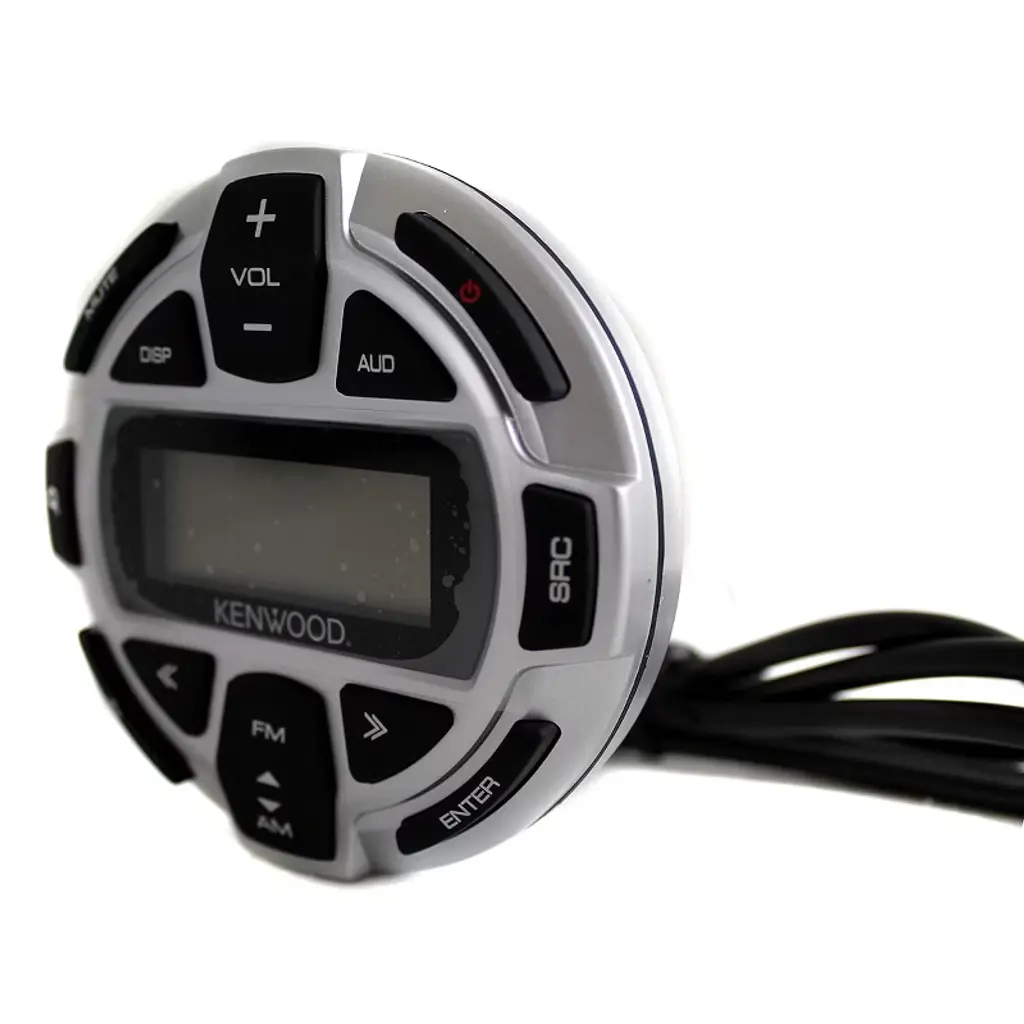 Enhance your marine or motorsport audio experience with the Kenwood KCA-RC55MR Wired Remote Control. This compact device offers seamless command over your Kenwood receiver ensuring your favorite tunes are always within reach whether you're navigating the open waters or tackling rugged terrains.Features•IPX7 Waterproof Rating•User-Friendly 2-Line LCD Display•Seamless Audio Control•Compact Easy Installation•Expandable System Connectivity•Multi-Remote SetupDesigned for DurabilityBuilt to withstand challenging environments the KCA-RC55MR boasts an IPX7 waterproof rating ensuring reliable performance even in wet conditions. Its robust construction makes it an ideal companion for both marine and motorsport adventures.Intuitive Control at Your FingertipsFeaturing a user-friendly 2-line LCD display with white illumination this remote allows you to effortlessly adjust volume switch sources and navigate tracks. Its straightforward interface ensures you stay focused on your journey while enjoying uninterrupted entertainment.Flexible Installation OptionsWith a diameter of 3-1/2 inches and a mounting depth of 1-5/16 inches the KCA-RC55MR is designed for easy installation in various locations. The included 33-inch cable provides ample length for versatile placement ensuring optimal accessibility.Expandable System CompatibilityFor those seeking extended reach optional extension cablessuch as the CA-EX7MR (22 feet) or CA-EX3MR (9 feet)allow you to increase the cable length up to 49 feet. Additionally by utilizing the CA-Y107MR splitter you can connect up to three remotes providing comprehensive control from multiple positions.CompatibilityCompatible with select KENWOOD marine and motorsports receivers:•KMR-700U•KMR-550U•KMR-555U•KMR-D765BT•KMR-D382BT•KMR-D372BT•KMR-M312BTWhat's in the Box•KCA-RC55MR Rounded Wired Marine LCD Remote Control•Connection Cable (33")•Mounting Hardware•ManualSpecifications•Waterproof Rating: IPX7•Display: 2-Line LCD with white illumination for clear visibility•Control Functions: Volume adjustment source selection track navigation•Dimensions Installation•Remote Diameter: 3-1/2•Mounting Depth: 1-5/16•Cable Length (Included): 33•Multi-Remote Connectivity: Supports up to three remotes using the CA-Y107MR splitter•Optional Extension Cables•CA-EX7MR 22 feet (6.7 m)•CA-EX3MR 9 feet (2.7 m)•Max Cable Length: Up to 49 feet (with extensions)•Compatibility: Compatible with select KENWOOD marine and motorsports receivers•KMR-700U•KMR-550U•KMR-555U•KMR-D765BT•KMR-D382BT•KMR-D372BT•KMR-M312BT