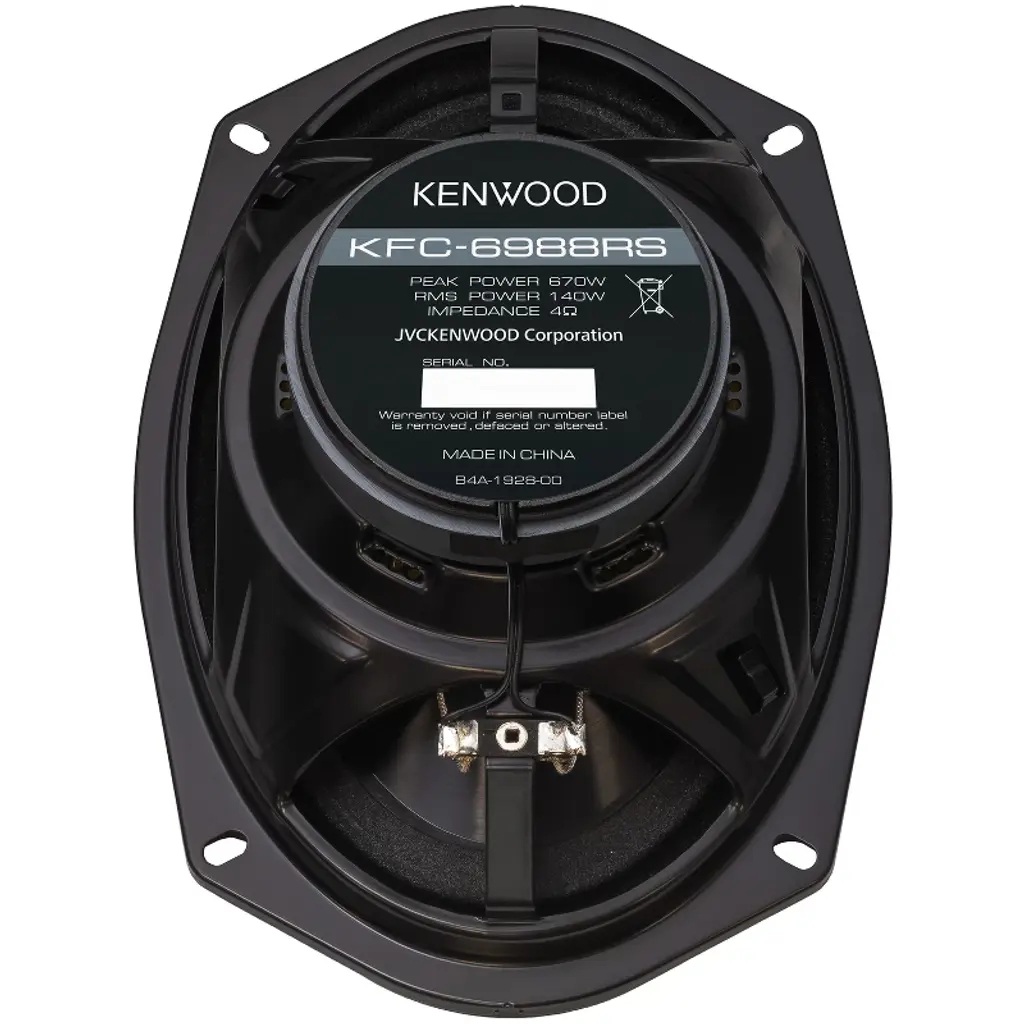 Upgrade your vehicle's audio experience with the KENWOOD® RS Series KFC-6988RS 6-In. x 9-In. 4-Way Car Speakers. Designed to handle up to 670 watts peak power and 140 watts RMS, these speakers deliver robust and dynamic sound, enhancing your in-car listening experience. They feature diamond-array-pattern woofer cones, durable rubber surrounds, multiple tweeters, acoustic sound harmonizers, and sound field enhancers. The frames offer an enlarged open area, providing more bass and cleaner sound, and facilitating straightforward installation in various vehicle models. Enhance your journey with KENWOOD® premium car audio solutions.