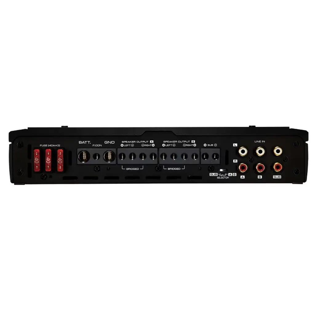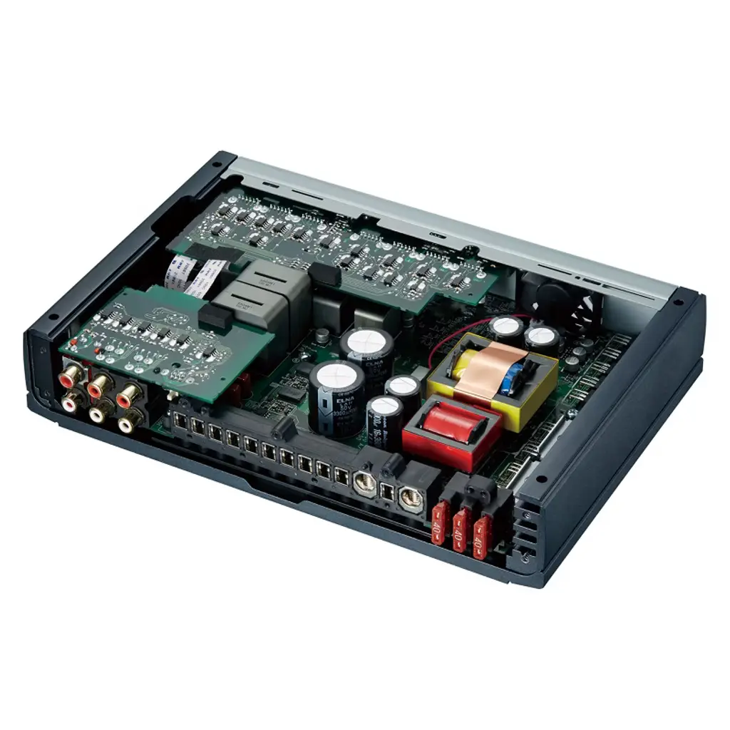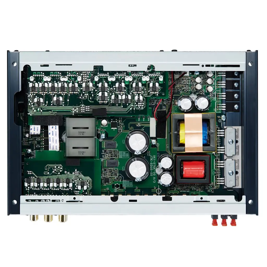 XR901-5 eXcelon 900-Watt 5-Channel AmplifierRich and Immersive High-Resolution AudioHigh-Resolution Audio is high-quality sound that exceeds CD standard. High-resolution audio captures and beautifully expresses all the details of your favorite music. Through ultra-high and low frequencies immerse yourself in a rich and high-quality sonic experience.High Performance PartsSpecial capacitors and inductors have been carefully selected for the digital amplifiers LC filter which is essential for achieving high-resolution audio. These high-performance parts reduce noise and distortion and ensure excellent sound quality.Deep Bass SoundBy using a down-firing subwoofer and superior technologies the audio system generates high-quality sound and powerful bass while still being compact.Enhanced Signal to Noise RatioThe feedback value of the current XR Amplifier has been optimized to improve the S/N ratio. As a result the noise level has been reduced by up to 40%.Specialized Circuit DesignThe noise reduction system employs a special layout that separates the analog circuit digital amplifier circuit and power supply circuit. This keeps interference between the circuits to a minimum decreasing noise and thereby achieving high performance and sound quality.Wired Remote ControlThe wired remote control allows you to adjust the volume of a subwoofer when connected to the head unit.Features:•Operating Voltage: 14.4V (11 - 16 V allowable)•Current Consumption: 80 A•Dimensions (W x H x D): 260 x 51 x 169 mm (10-1/4 x 2 x 6-5/8)•Weight: 2.4 kg (5.2 lbs)•Warranty: 2-YearWhat's in the Box:•One XR901-5 amplifier•Mounting hardware•Owner's manualSpecifications:CEA-2006 Standard•60 W x 4: RMS Watts per channel @ 4 ohms 1% THD+N•400 W x 1: RMS Watts per channel @ 4 ohms 1% THD+N•78dB: Signal to Noise Ratio (Reference: 1 Watt into 4 ohms)Rated Power Output •14.4 V •60 W x 4 / 400W x 1: (4?) (20 Hz - 20 kHz 1.0% THD) (20 Hz - 200 Hz 1.0% THD)•75 W x 4 / 600W x 1: (2?) (1 kHz 1.0% THD) (100 Hz 1.0% THD)General•Frequency Response: 20-20kHz(1dB)•Input Sensitivity: 0.2 V - 5.0 V (MIN-MAX)•Input Impedance: 10 kΩ•Signal to Noise Ratio: 100 dB•Low Pass Filter Frequency: (-24dB/oct) •50 Hz - 200 Hz (variable): Low-Pass Filter Frequency•High Pass Filter Frequency: (-12 dB/oct.) •50 Hz - 200 Hz (variable): High-Pass Frequency•Dimensions (W x H x D): 260 x 51 x 169 mm (10-1/4 x 2 x 6-5/8)