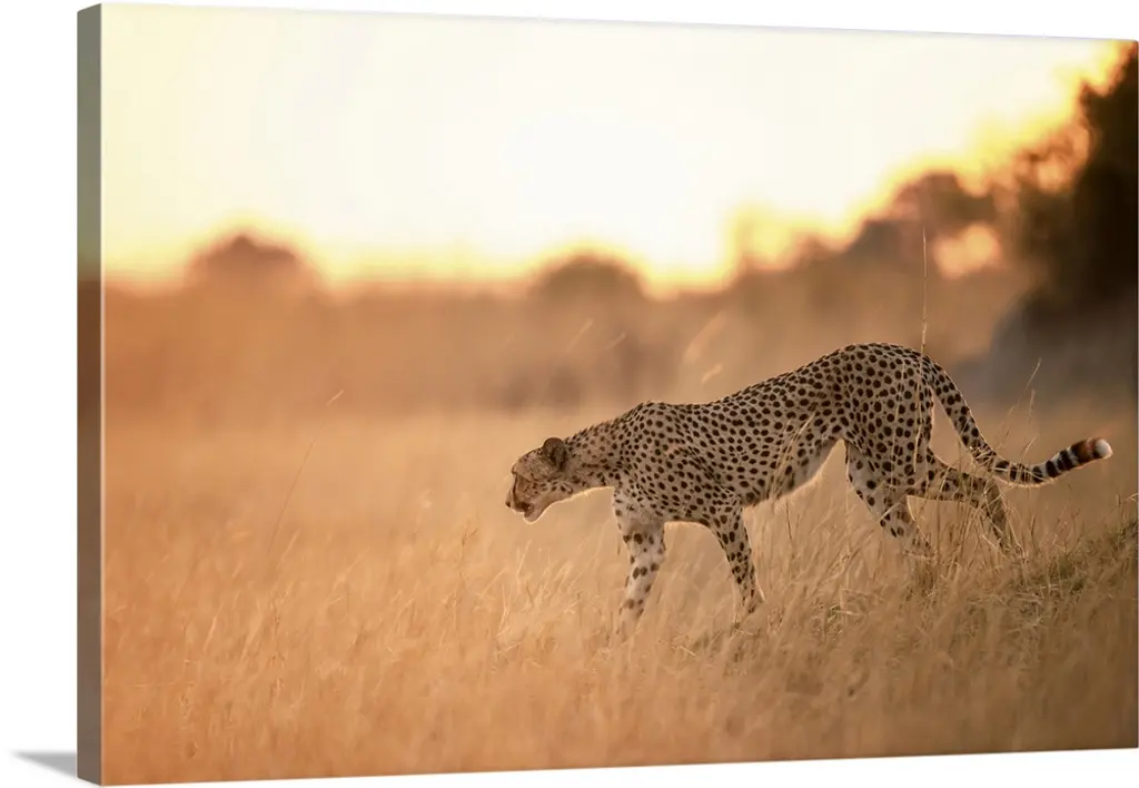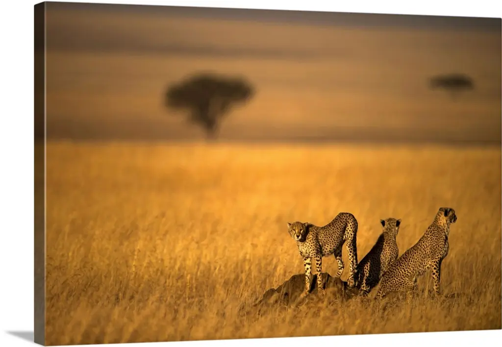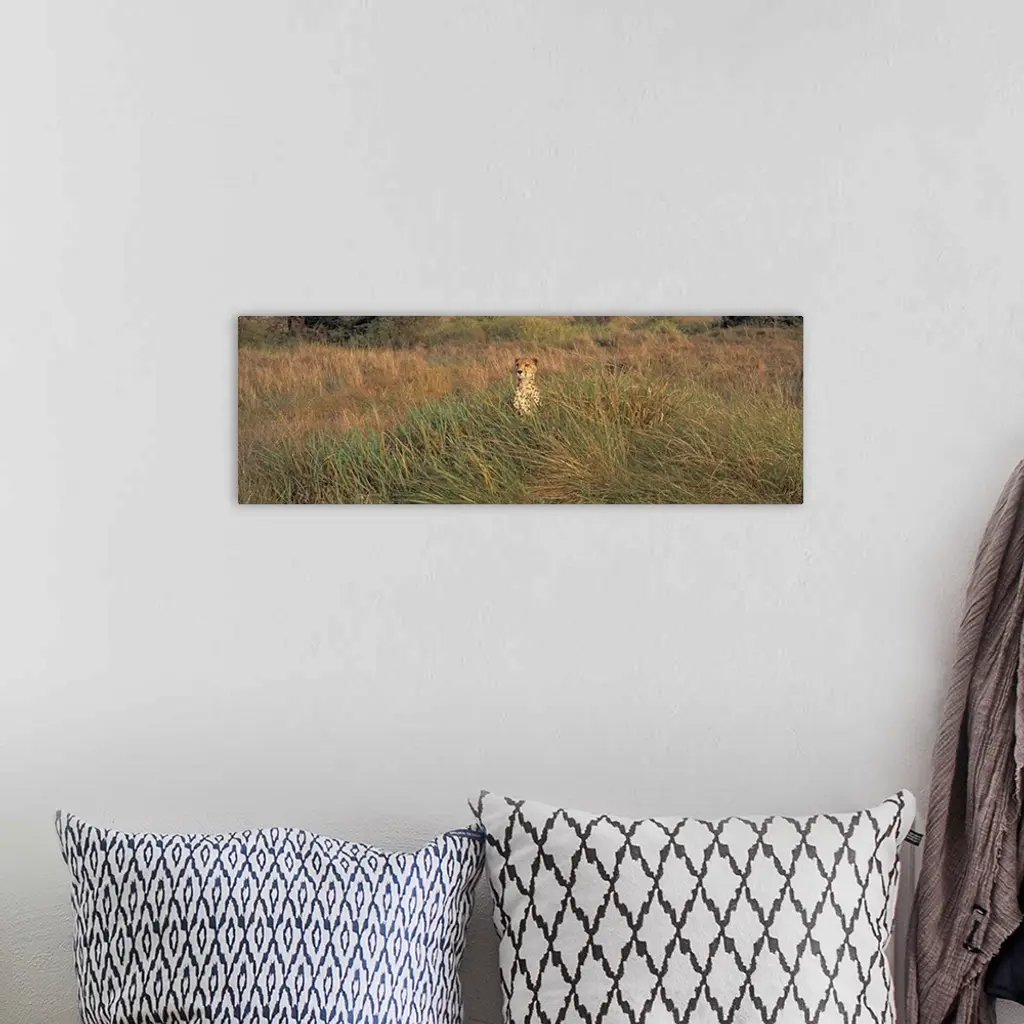 Kenya, Masai Mara National Park, View of a Cheetah camouflaged in a grassland wall art for home and office decor. Discover canvas art prints, photos, mural, big canvas art and framed wall art in GreatBigCanvas.com's varied collections.