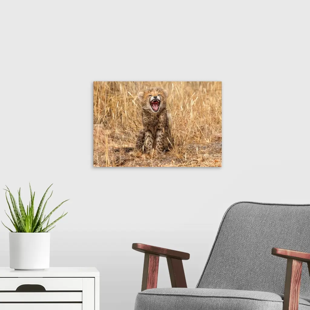Kenya, Masai Mara National Reserve, Close-Up Of Cheetah Cub Yawning