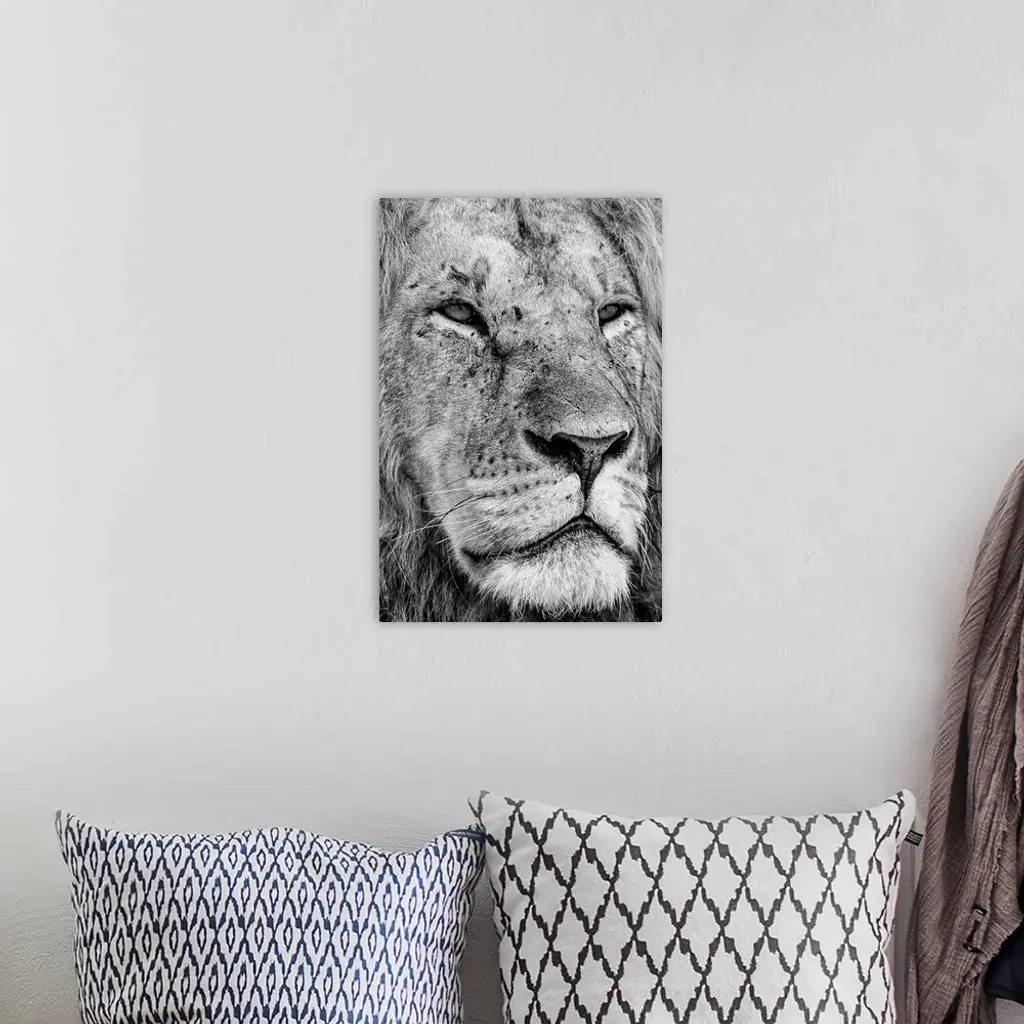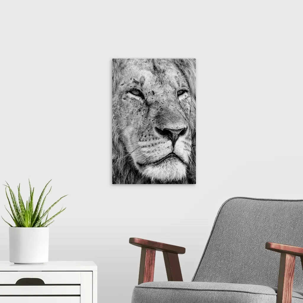 Kenya, Rift Valley, Masai Mara National Park, Close-Up Black And White Of A Male Lion