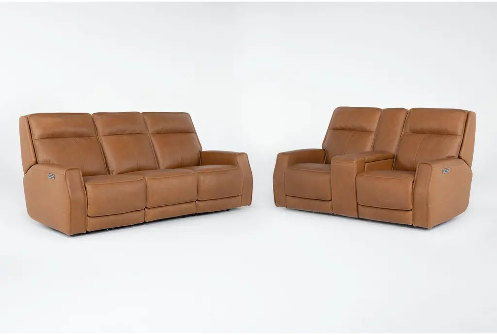 Kenyon Dual-Power Reclining Sofa, Loveseat With Console And Recliner Set - Tan