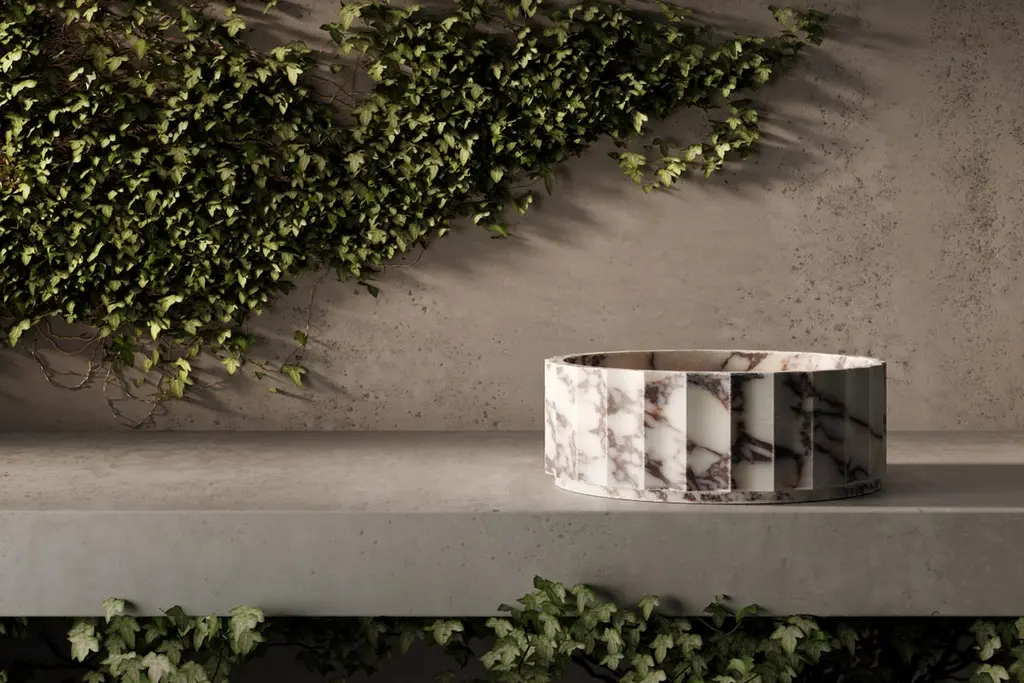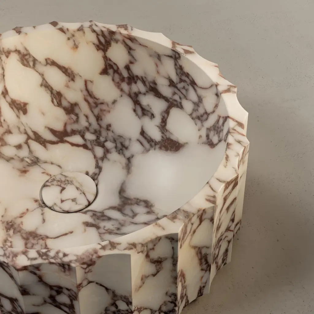 The Kepi basin si characterized by vertical concave finishes, it can be customized in different stones and dimensions.