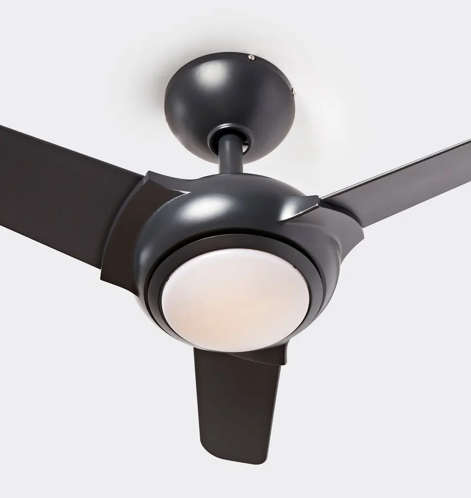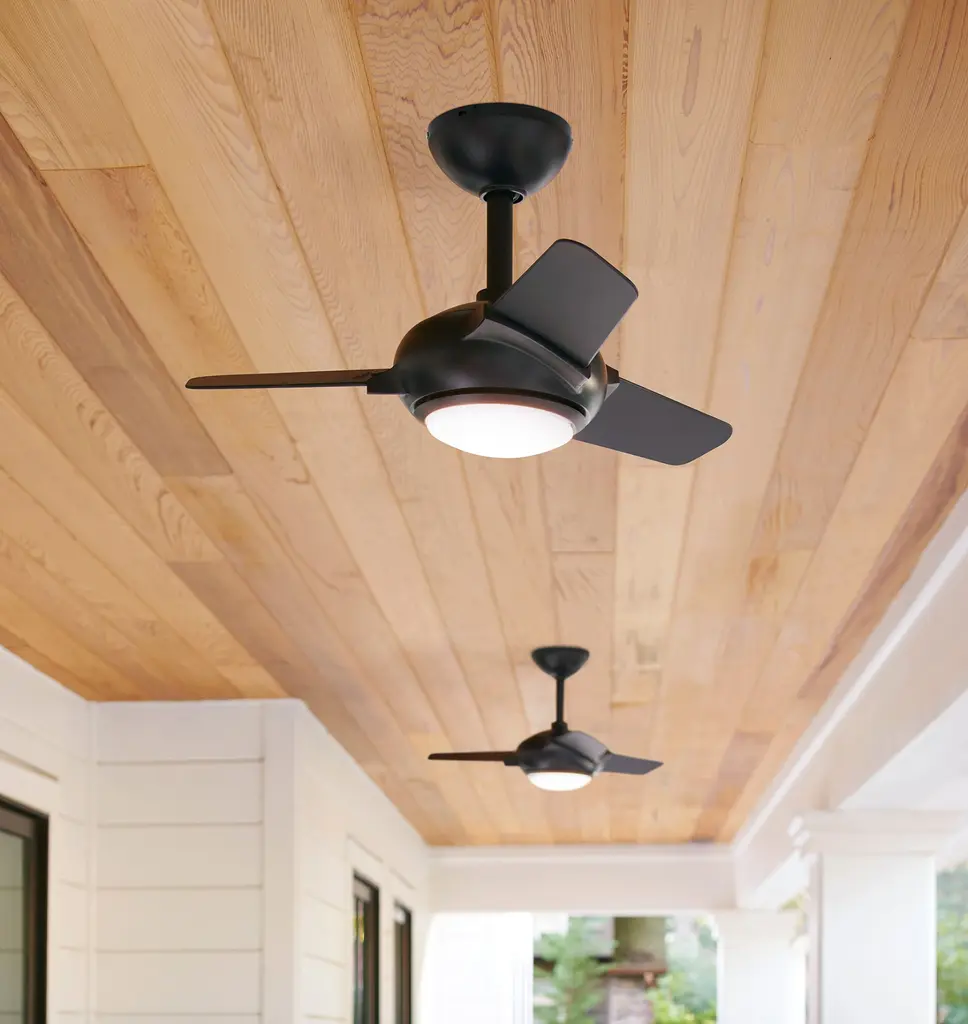 Designed for use in smaller spaces or on a covered outdoor porch, our Kestrel Fan features a 27" width that is capable of powerfully moving air despite its small size. Kestrel brings the concept of modern, ellipse-shaped pendant lighting to ceiling fan design. Available in several body and blade finish combinations, with a dimmable LED light.