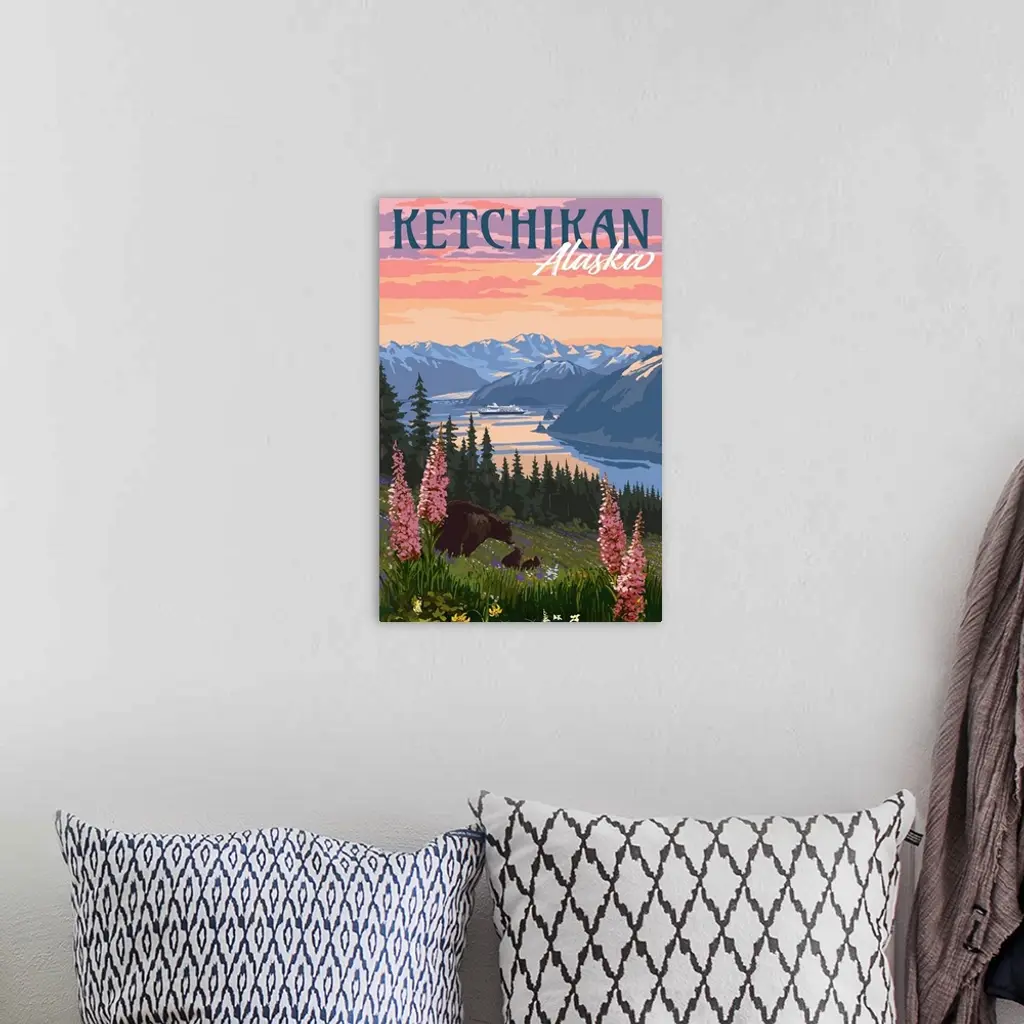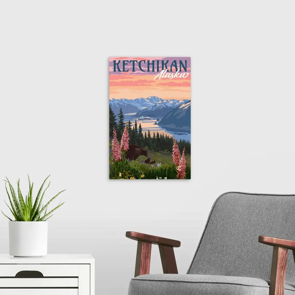 Ketchikan, Alaska - Bear & Spring Flowers wall art for home and office decor. Discover canvas art prints, photos, mural, big canvas art and framed wall art in GreatBigCanvas.com's varied collections.