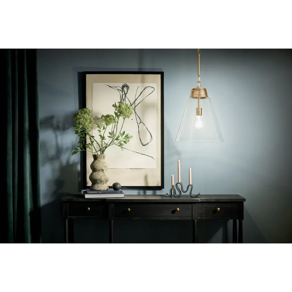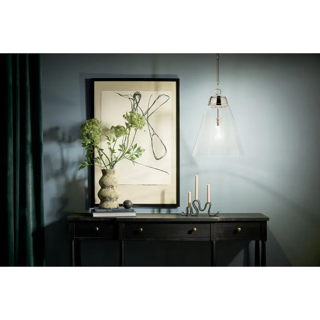 As versatile as it is luxurious, this 1-light large pendant is a true statement piece. Its decorative chain comes preassembled with three stems connected by links, giving it a unique detail while allowing you to easily adjust its height. Its clear glass shade allows for ample illumination in a variety of environments, most notably, updated traditional. Chain hung and sloped ceiling compatible.Features:Dimensions:Electrical Specifications: