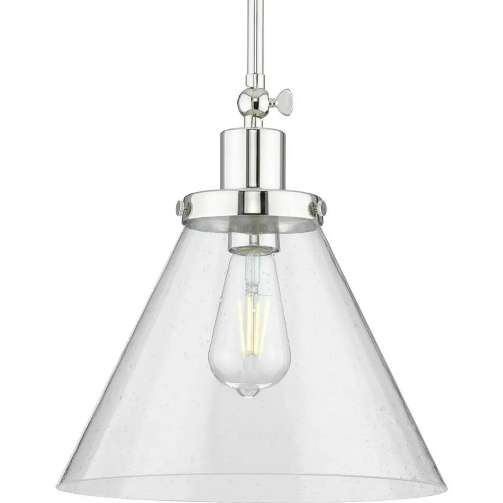 As versatile as it is luxurious, this 1-light large pendant is a true statement piece. Its decorative chain comes preassembled with three stems connected by links, giving it a unique detail while allowing you to easily adjust its height. Its clear glass shade allows for ample illumination in a variety of environments, most notably, updated traditional. Chain hung and sloped ceiling compatible.Features:Dimensions:Electrical Specifications: