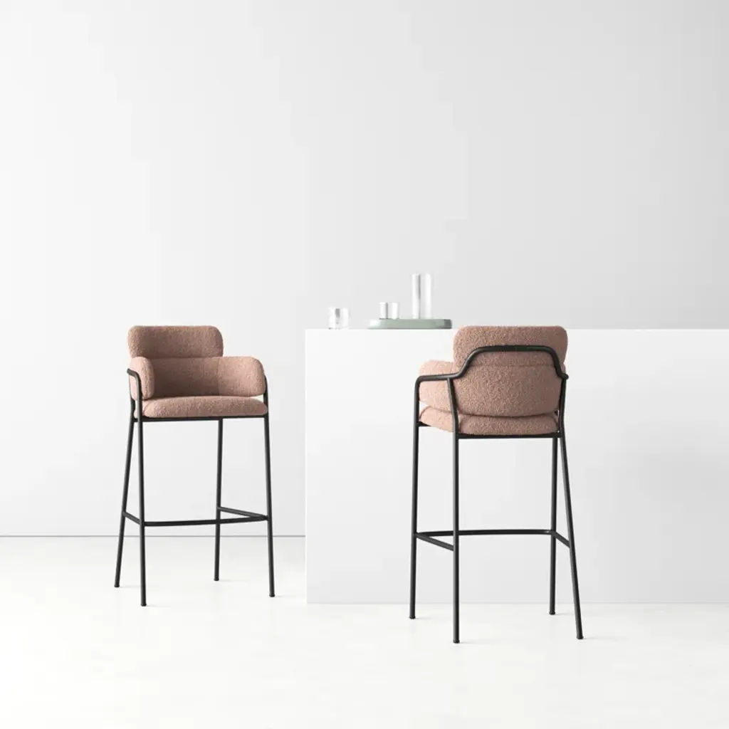 This stool has a beautifully wrapped seat and back with a fine frame. This stool combines mid-century modern with glam and décor elements and works well in space, residential, or hospitality.