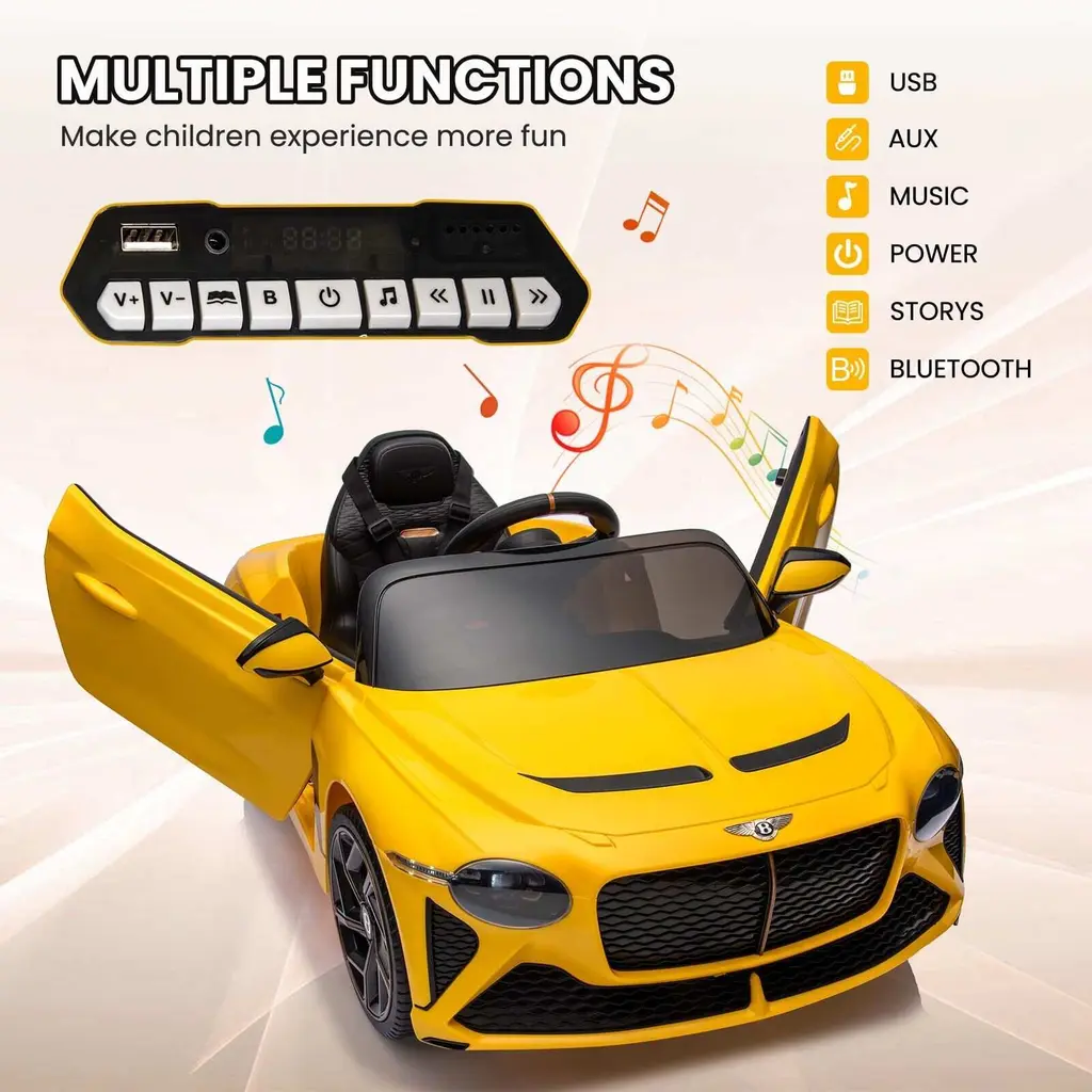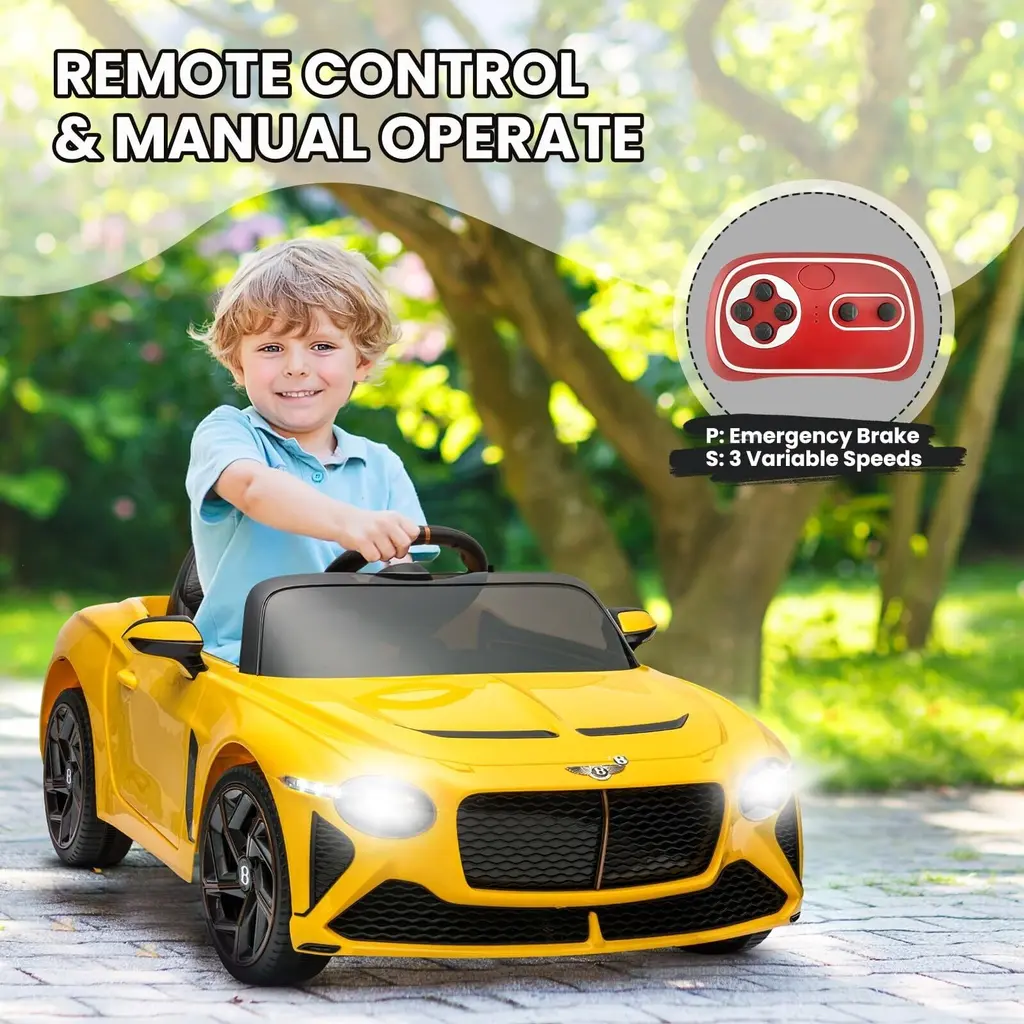 【Officially Licensed Bentley】This licensed bentley car for kids is inspired by the iconic Bentley Bacalar, featuring realistic design elements. 【Dual Driving Modes】: This kids cars to drive offers parental remote control and manual operation for kids. Parents can use the remote control (with 3-speed shifting) to assist younger children. 【Superior Performance】: Equipped with two powerful 25W motors and a 12V 7AH rechargeable battery, this bentley kids car provides nearly one hour of exhilarating fun. 【Safety First】This bentley kids ride on car emphasizes safety with a power switch to prevent accidental starts, a three-point safety belt, and a soft start design for gentle acceleration. 【Enjoyable Driving】This 12V kids electric vehicles is perfect for eager young drivers, featuring cool front and rear LED lights, horn and engine sounds, realistic pedal acceleration.