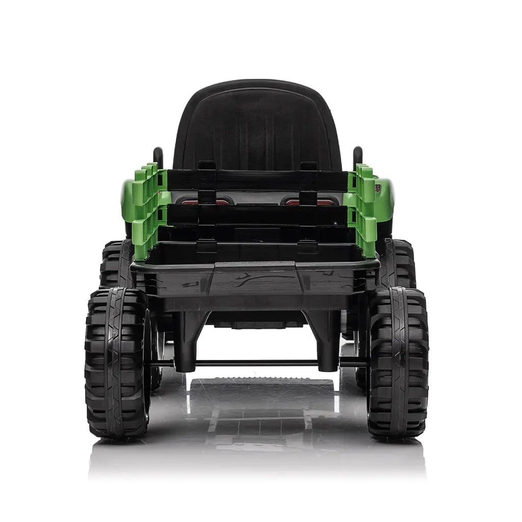 Product Overview: Introducing the 24V Ride On Tractor with Trailer, a perfect toy for kids aged 3 and up. This electric tractor is powered by a robust 400W motor, providing an exciting driving experience on various terrains. With remote control capabilities, parents can easily oversee their child's adventures.Battery: 12V 4.5AH x 2 (24V 4.5A) Motor: 200W x 2 Maximum Load: 66.14 lbs Speed: 5-8 km/h (3.11-4.97 MPH) Applicable Age: 3+ years Test Standards: ASTM, CPC, FCCLength: 50.39 in. Width: 22.05 in. Height: 21.26 in. Weight: 29.76 lbsThis electric tractor is perfect for outdoor adventures, allowing children to explore their surroundings safely.Supervision by adults is highly recommended for safe operation during play.