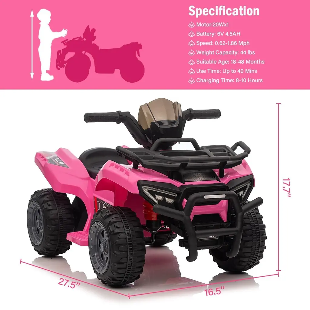 Kids Atv 4 Wheeler, 6V Ride On Toy Car - Rose Red