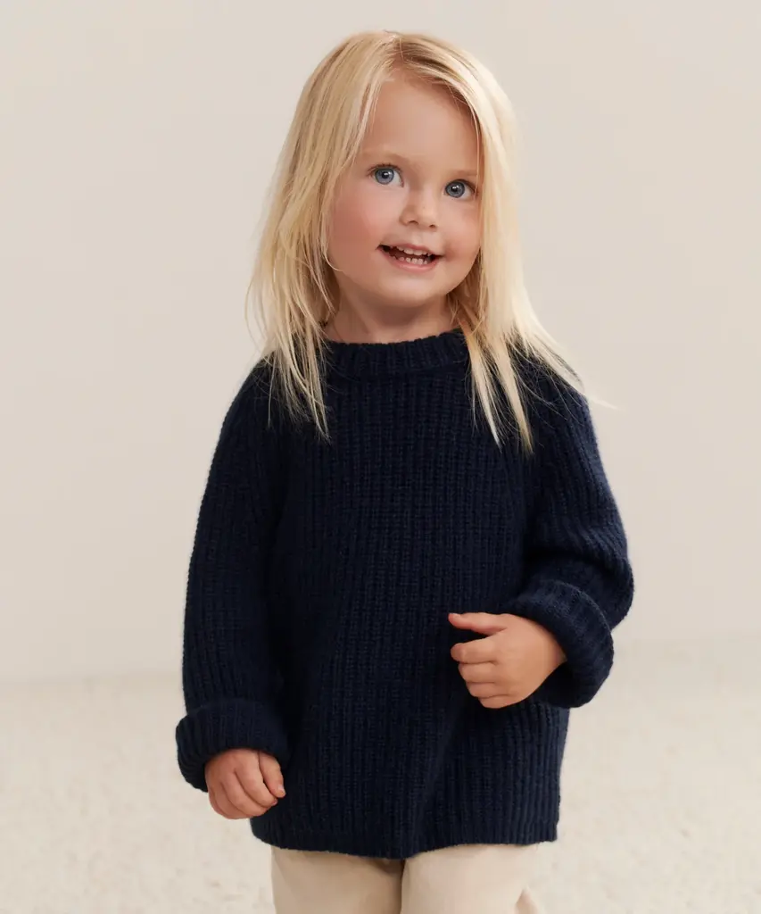 Kids' Cashmere Fisherman Navy Your favorite Fisherman Sweater in mini-me form. Cozy and comfortable, this knit is perfect for the little ones in your life. 100% cashmere. Made in China.