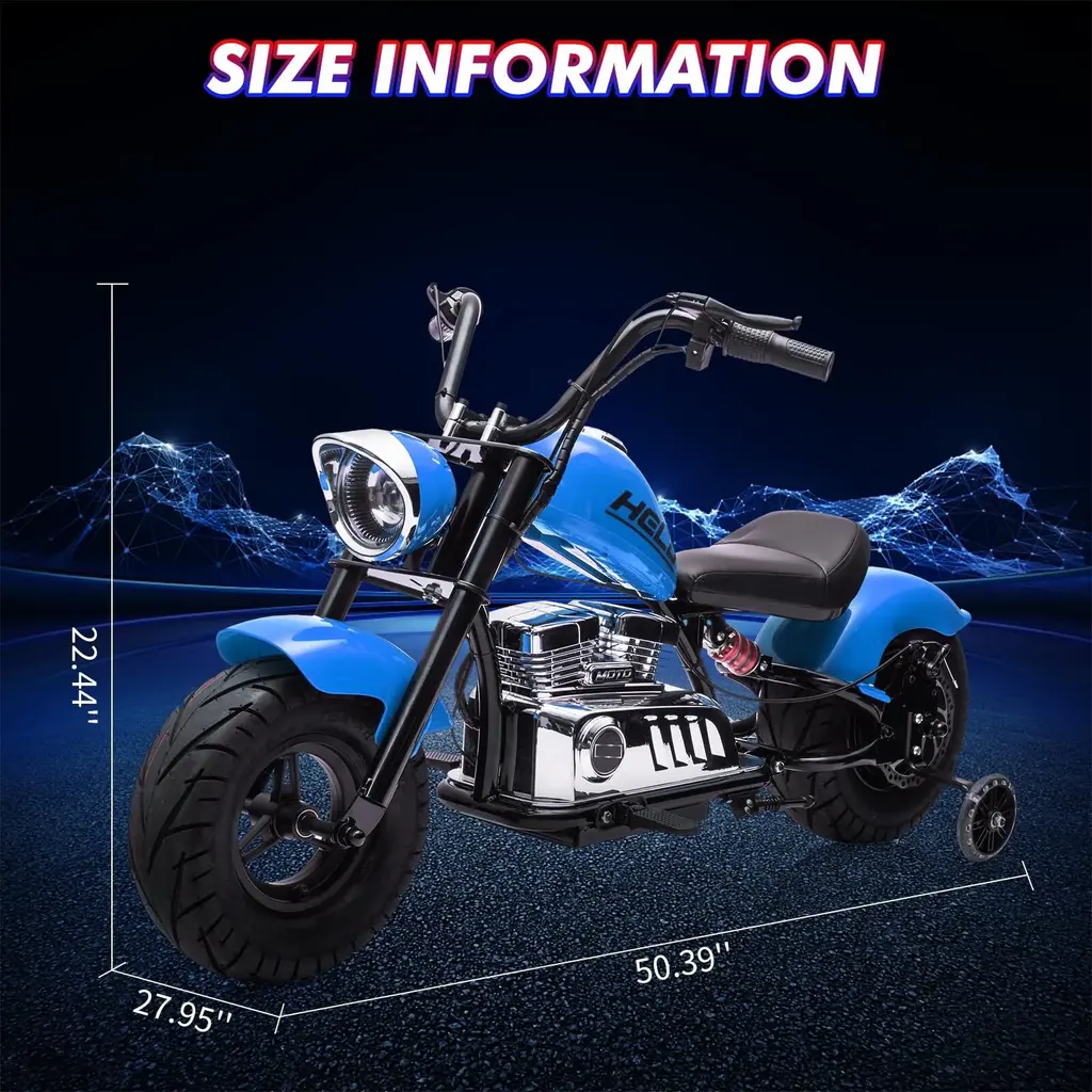 Impressive Performance:This electric dirt bike features a powerful 350W brushless motor, capable of reaching speeds up to 16.5 mph. It's perfect for thrill-seeking teens, providing an exciting and dynamic riding experience. Long Riding Duration:Fitted with a robust 36V 9AH battery, this motorcycle charges fully in just 8-12 hours and offers up to 45 minutes of uninterrupted riding fun. Ideal for extended outdoor excursions, it keeps young riders active and entertained. Versatile All-Terrain Design:Built to handle diverse terrains, this electric dirt bike is equipped with durable, wear-resistant off-road pneumatic tires. It delivers a smooth and powerful ride across fields, grassy patches, and uneven paths, making it great for adventurous kids. Enhanced Safety Features:Prioritizing safety, this dirt bike includes authentic shock absorbers for both the spring suspension and seat. The addition of two training wheels improves stability, allowing young riders to gain confidence while mastering their riding skills. Exciting and Interactive Elements:Designed with teens in mind, this electric bike features built-in music, bright LED headlights, and user-friendly foot pedals. These engaging features enrich outdoor adventures for kids weighing up to 176 lbs, ensuring each ride is filled with enjoyment