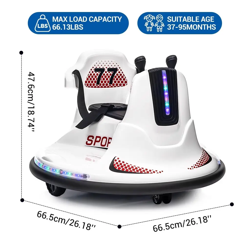 Kids Electric Ride On Bumper Car Toy With Remote Control - White