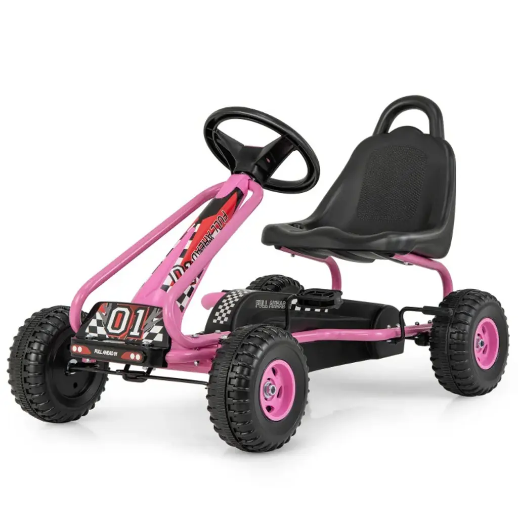 Product Overview:Rev up the fun with our Kids Pedal Go-Kart, designed for children ages 5 to 12. This durable and comfortable ride-on toy features a 3-position ergonomic seat, rugged rubber wheels, and a sophisticated suspension system to ensure a smooth and enjoyable ride. Ideal for various terrains, this pedal-powered kart helps kids develop strength, coordination, and endurance.Product Features:Specifications:Suitable Scenarios:This go-kart is perfect for outdoor play in driveways, sidewalks, and parks. Its robust construction and versatile features make it a great choice for active play and adventure.Notes:Adult supervision is recommended. Assembly is required; instructions are included.