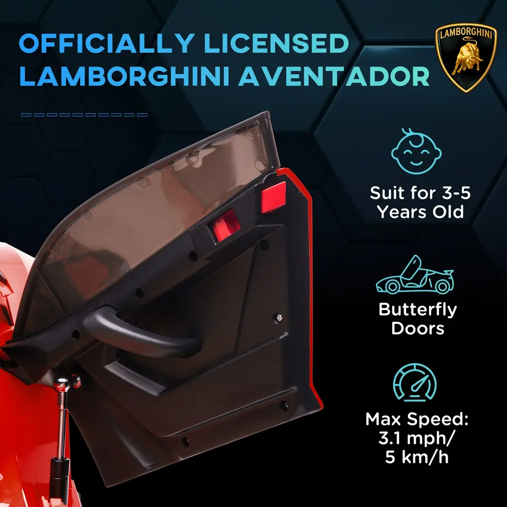 Product FeaturesLamborghini Aventador Licensed: Give your child the thrill of an officially licensed toy electric car that faithfully replicates the iconic Lamborghini Aventador SVJ Roadster, complete with stylish scissor doors.Convenient & Portable: Our Lamborghini toddler electric car is friendly for on the go, thanks to its user-friendly pull handle and an extra set of wheels to use for transportation.Enjoyable Driving: This children's car is created with various elements to keep kids entertained. The steering wheel's horn, music control buttons, and dashboard display lights help create a realistic driving experience. Playing their favorite music can really pump up the hype factor.Child Driven or Remote Operated: Little riders can control the kids car directly inside the driver's seat, or you can direct the toy using the remote control to increase engagement with your child. Also, remote use can keep them safe when you take them on walks around the block.Smooth Ride: The shock-absorbing wheels ensure a smooth and comfortable ride, allowing your child to enjoy an adventure with stability and confidence.