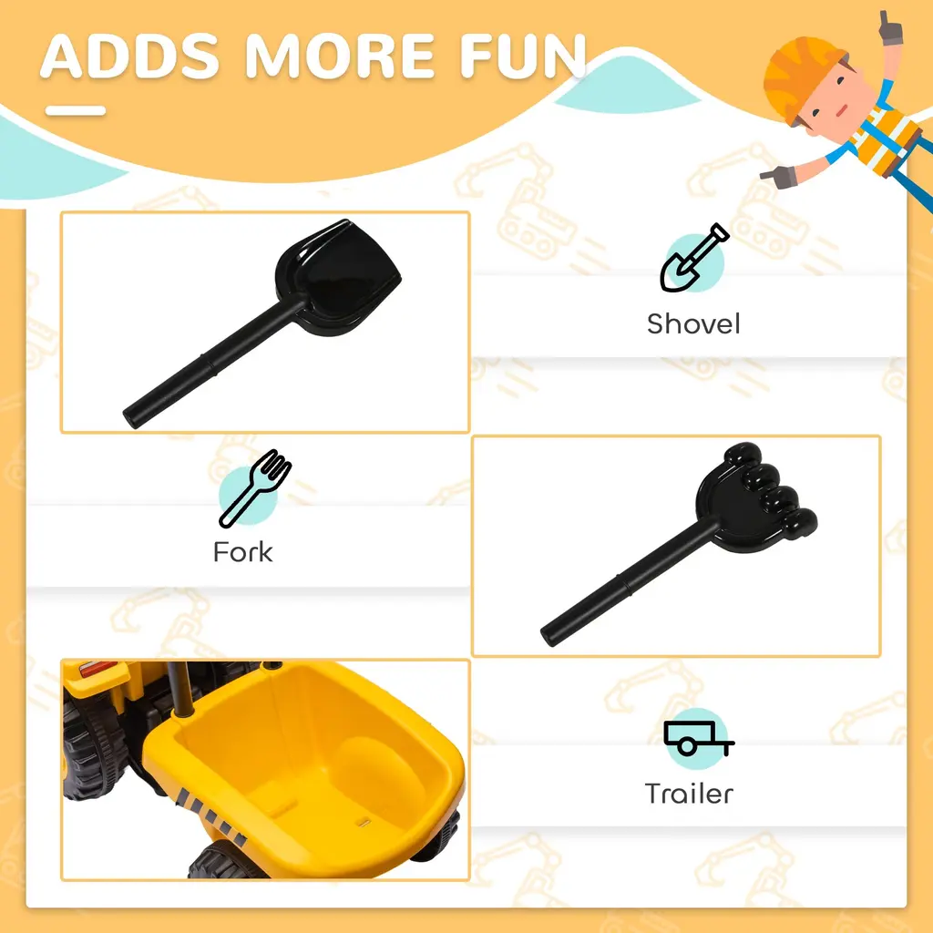 Kids Ride-On Caterpillar Excavator With Functional Shovel, Trailer, And Fun Sound Features - Yellow - Yellow
