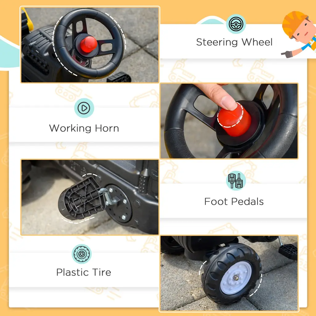 Kids Ride-On Digger Truck With Horn, Excavator Toy, 6 Wheels & Detachable Trailer, Pedal-Powered For Ages 3-6 - Yellow - Kids - Yellow