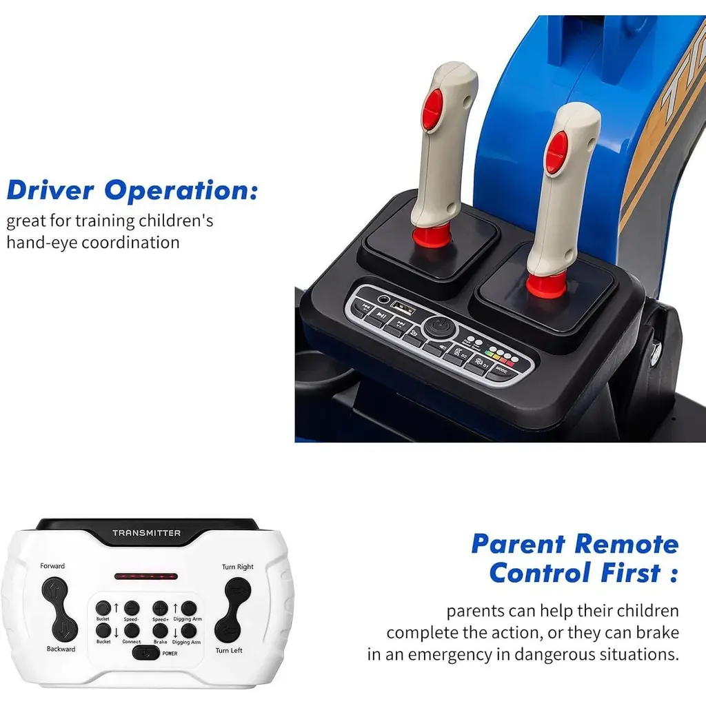 Kids Ride-On Electric Excavator Digger With Remote Control - Blue