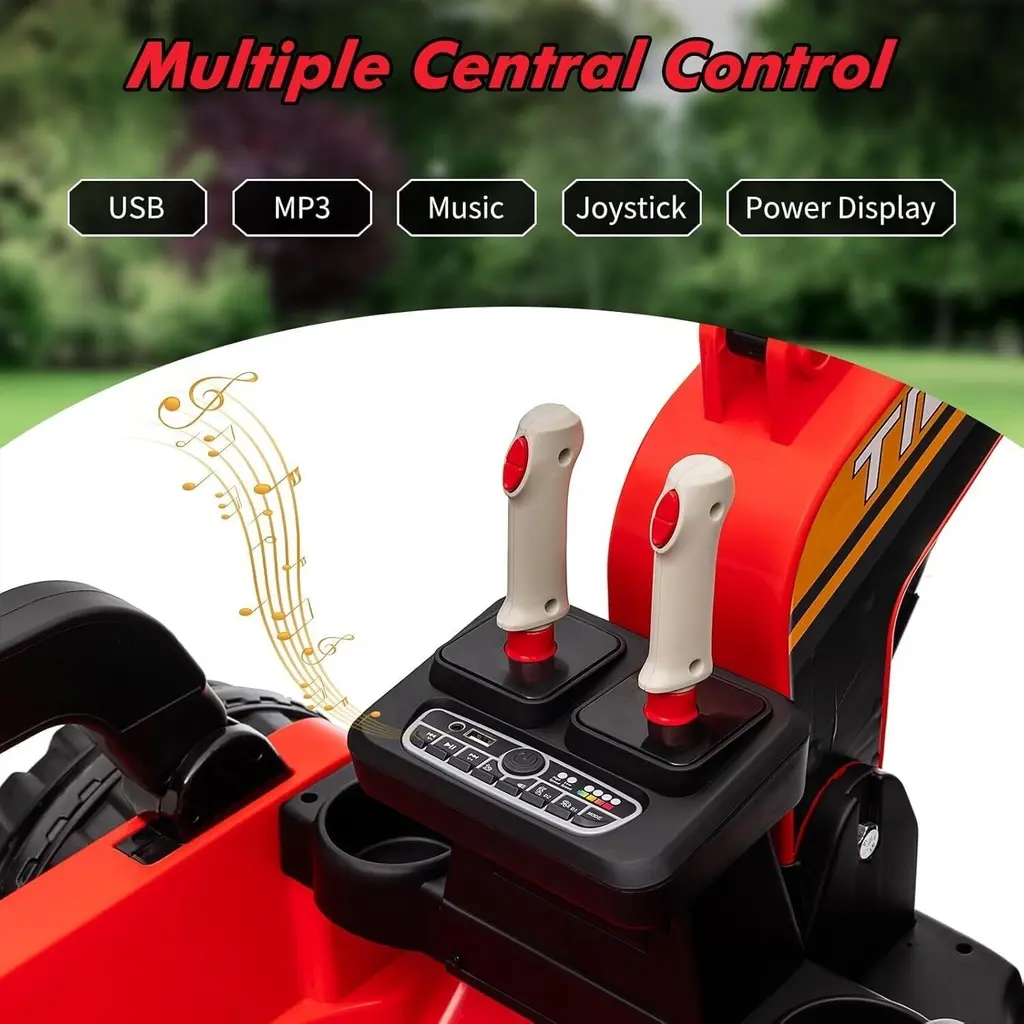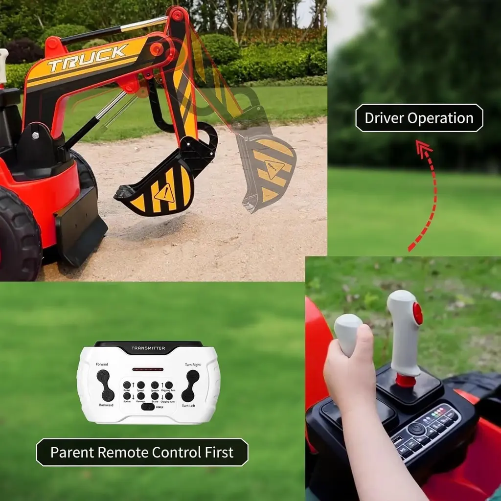 Kids Ride-On Electric Excavator Digger With Remote Control - Red