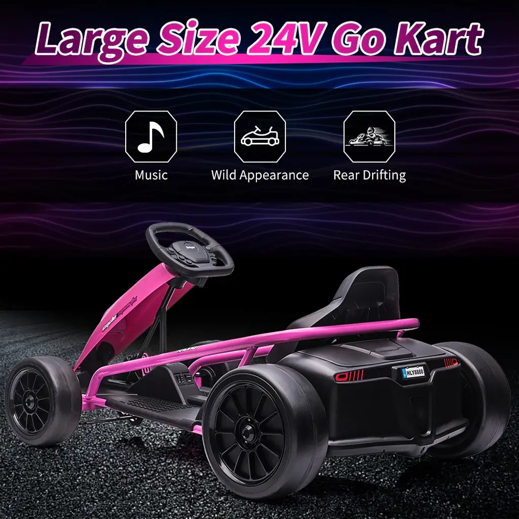 Kids Ride On Go Kart,extra Powerful Motors,9ah Large Battery 8Mph High Speed Electric Vehicle Car Drifting With Music,horn - Green