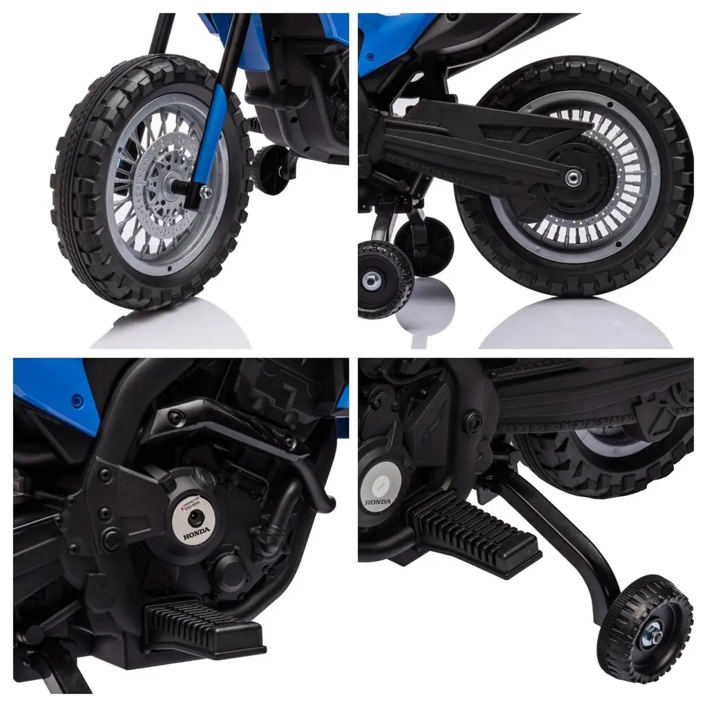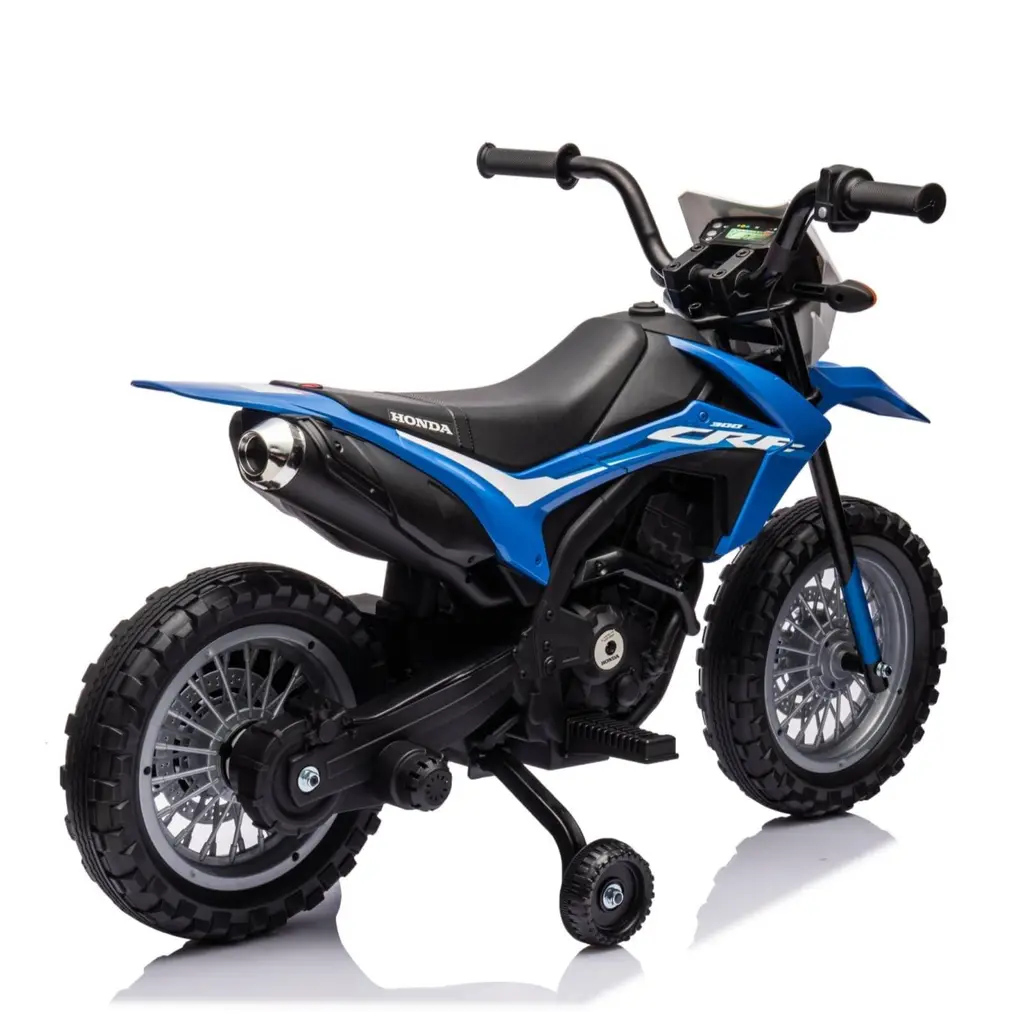 Realistic Experience: The kids ride-on motorcycle offers an immersive experience, simulating a real motorbike with its engine sounds, providing children with an exciting and realistic playing experience, fostering creativity and imaginative play. Electric and Rechargeable: Powered by a 6V battery, the motorbike provides a convenient and eco-friendly mode of play. Rechargeable functionality offers long-lasting entertainment, ensuring that children can enjoy extended playtimes without interruption. Licensed Honda Design: The motorbike showcases an authentic and licensed design from Honda, delivering a high-quality and officially approved product that mirrors the style and features of a genuine Honda motorcycle, offering a sense of authenticity and brand recognition. Detachable Training Wheels: The inclusion of detachable training wheels ensures that children can learn to ride and balance at their own pace, enhancing safety and confidence while gradually transitioning to riding without support, making it a suitable choice for children of varying skill levels. Color Options: Available in blue, pink, red, and black, the motorbike offers a range of vibrant and appealing color choices, allowing for personalized gifting and catering to children's individual preferences, making it an exciting and personalized gift for children.