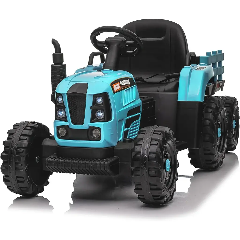 Authentic Driving Experience: Features bright LED headlights, realistic dashboard, adjustable safety belts, and a detachable trailer. Perfect gift for kids aged 3-7 years, ideal for Halloween and Christmas. Dual Control Modes: 12V battery-powered with both remote control and manual modes. Parents can guide with the remote control while kids drive independently with 3 speed options. Built-in Entertainment: Enhance the ride with built-in music, realistic tractor sounds, and USB connectivity. Parents can connect mobile phones to play favorite tunes. Safe and Reliable Structure: Our Kids ride-on tractor ensures safety with handrails, adjustable seat belts, and soft-start technology. Enjoy smooth driving on wear-resistant wheels, indoors or outdoors. Multiple Usage Functions: The spring suspension and 6-wheel design ensure stability and comfort, making it suitable for various terrains.