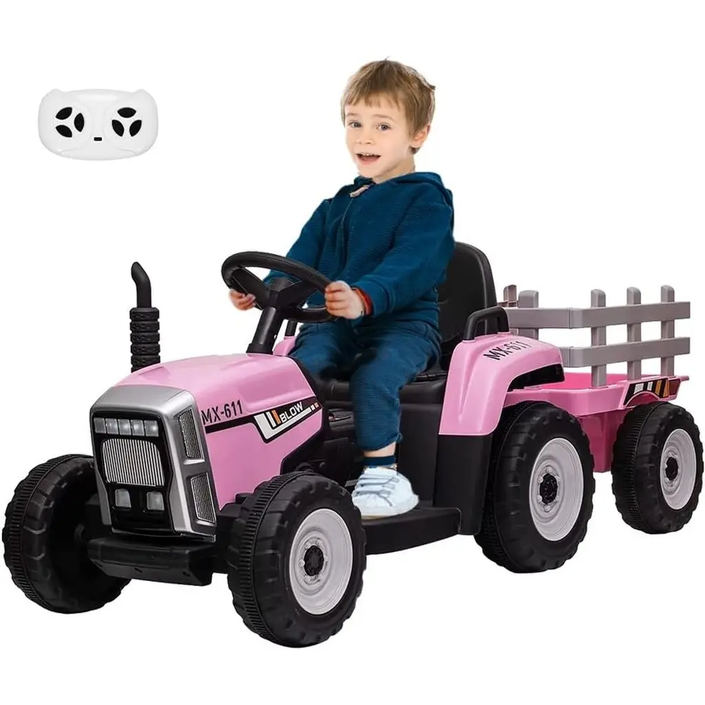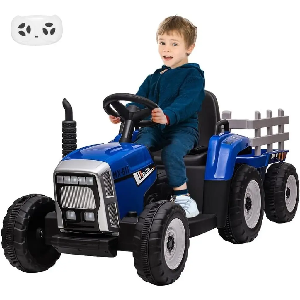 Manual & Parental Control: Provide more detailed instructions and guidance on how to use the parental control feature, including how to effectively use it to ensure the safety of the child. Additionally, consider adding a training mode for younger children to practice driving with parental control before being allowed to operate the vehicle independently. Safety Guarantee: Adding additional safety features such as a roll bar, reinforced frame, or padded seat to further protect the child from potential harm. Provide clear instructions on how to use all safety features, and ensure that the parent or caregiver is aware of how to properly use the remote control. Upgrade Version: Adding more options for customization, such as different tire types or colors. Additionally, offer replacement parts or repair services to ensure the longevity of the ride-on tractor. Build-in Fun: Offer a wider selection of music and sounds to choose from, or consider adding interactive features such as a map or game to engage the child while driving. Provide instructions on how to use all features, and ensure that they are easy to access and use. Realistic Tractor Design: This ride-on tractor features bright 7-LED headlights, a control pedal, a realistic 2+1 gear shift, a solid armrest, and a detachable trailer. It is powered by a rechargeable battery with 2*12V motors, and has an overall size of 54"(L) x 20"(W) x 21"(H) with a weight capacity of 66 lbs. The battery takes 8-12 hours to recharge. Specification: Material: PP+ Iron Dimension: 54 x 20x 21" Max capacity: 66 lbs Suitable Age: 3+ years Charge Time: 8-12 hours Speed: 1.9-5 mph