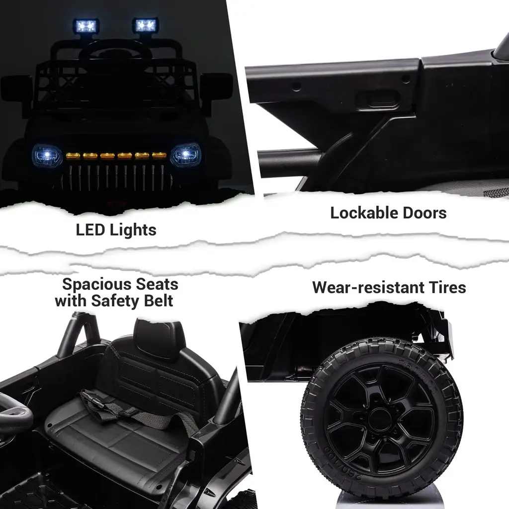 Dual Motors: This 12V ride-on truck ensures a thrilling driving experience of 1.55-2.49 Mph. 8-12 hours charging time provides 40-50 minutes of continuous fun, addressing the issue of limited battery life and allowing for extended entertainment. Smooth Ride Experience: Designed with slow start and spring shock absorbers, this 12V ride on truck protects your kids from the impact of rough terrain, ensuring a comfortable and stable ride for kids on bumpy roads. Two Driving Modes: This electric car offers a 3-speed driving experience with a steering wheel, electric foot pedal, and control panel. You can also supervise with a 2.4G remote featuring 2-speed settings, enhancing interaction with your kids. Fun & Functional: This kids ride on truck car features LED lights and MP3 music, allowing kids to play their favorite tunes, creating a multi-sensory play environment that is engaging and enjoyable for your kids. Ideal Gift For Your Kids: Ideal for kids aged 3+, this battery powered car for kids supports up to 66 lbs. Measuring 38.19" x 26.38" x 25.98", this toddler toy car provide a spacious space for kids to comfortably ride and enjoy the toy.