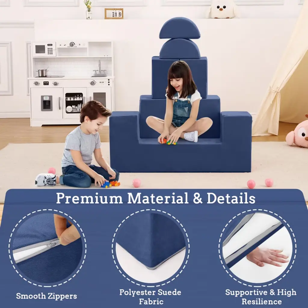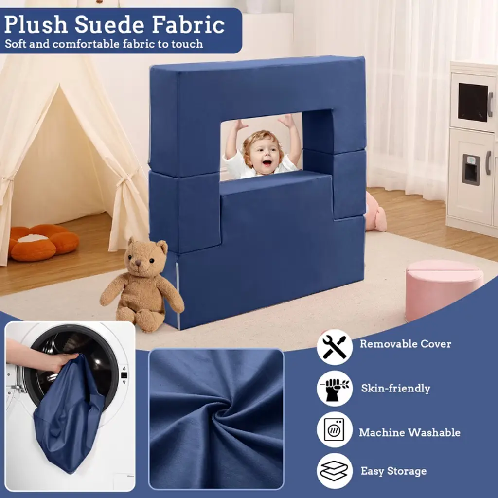 Unleash your child’s creativity with this versatile modular kids couch! Easily transforms into a bed, table, fort, or reading nook—perfect for imaginative play. Made from high-density foam, it’s soft, safe, and ideal for climbing, lounging, or relaxing. The convertible design suits bedrooms, nurseries, or daycare spaces, offering comfort for reading, watching TV, or napping. Quick to set up and rearrange, it helps kids build coordination while having fun. The velvety cover is removable and machine washable, staying fresh and vibrant through everyday use.