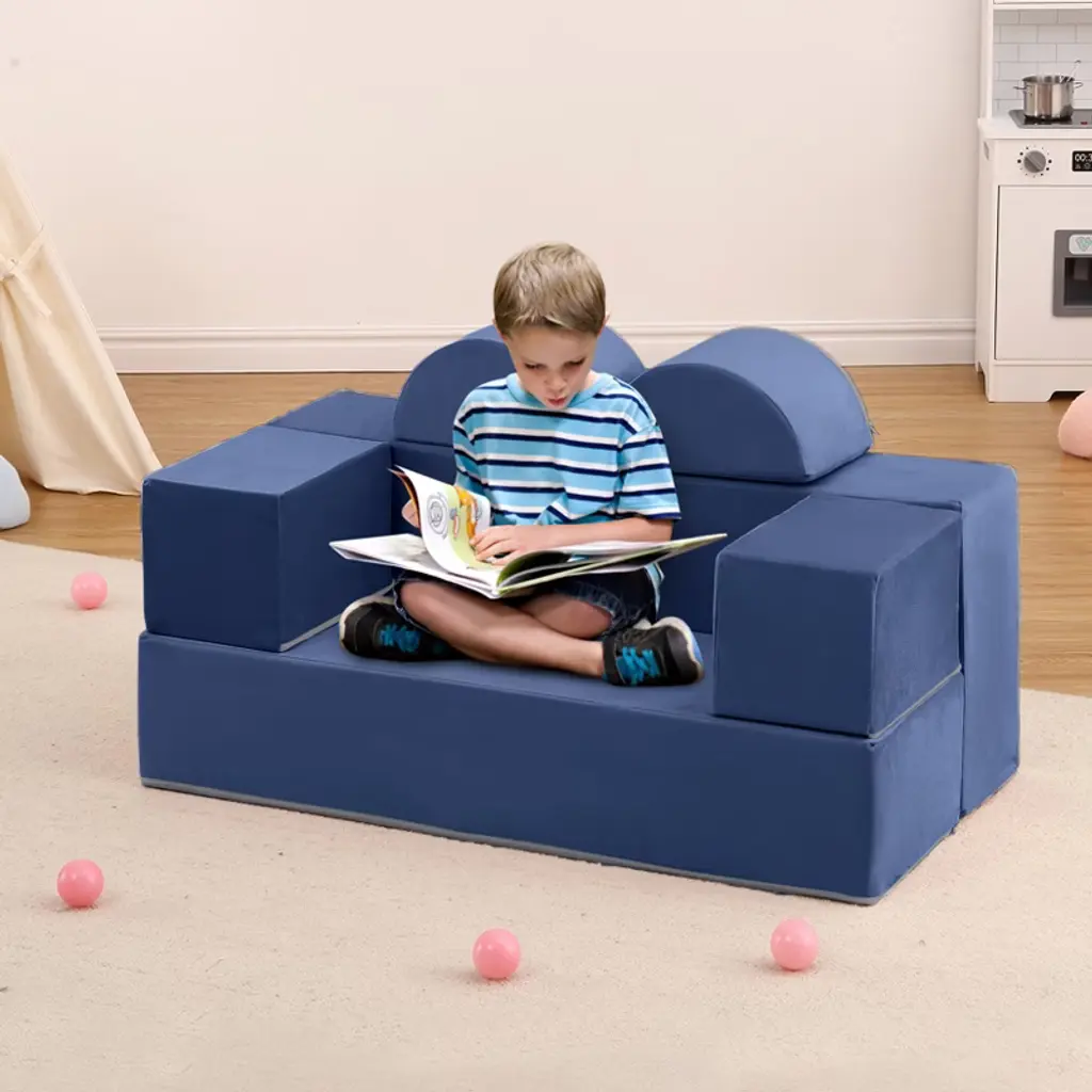 Unleash your child’s creativity with this versatile modular kids couch! Easily transforms into a bed, table, fort, or reading nook—perfect for imaginative play. Made from high-density foam, it’s soft, safe, and ideal for climbing, lounging, or relaxing. The convertible design suits bedrooms, nurseries, or daycare spaces, offering comfort for reading, watching TV, or napping. Quick to set up and rearrange, it helps kids build coordination while having fun. The velvety cover is removable and machine washable, staying fresh and vibrant through everyday use.