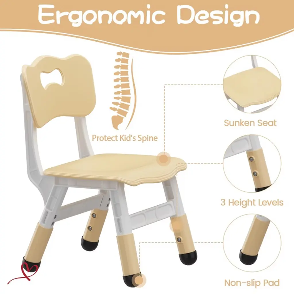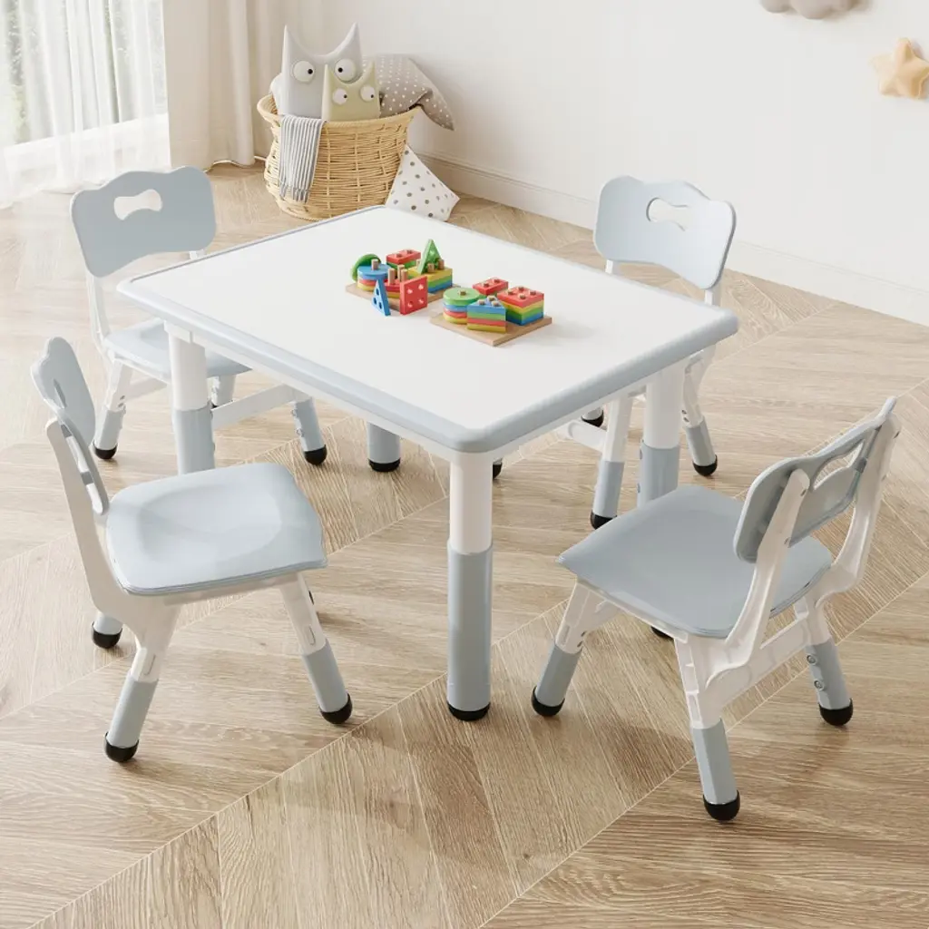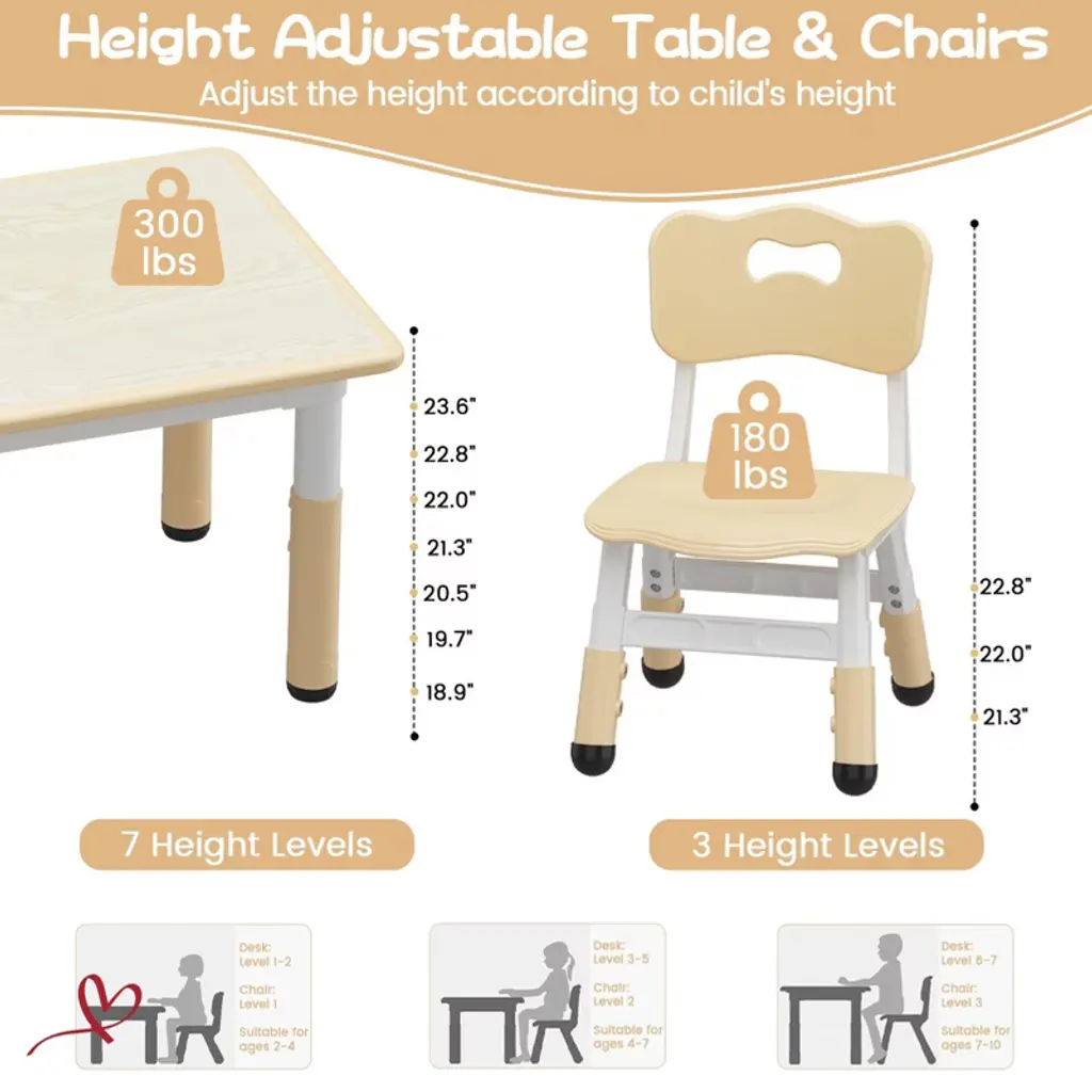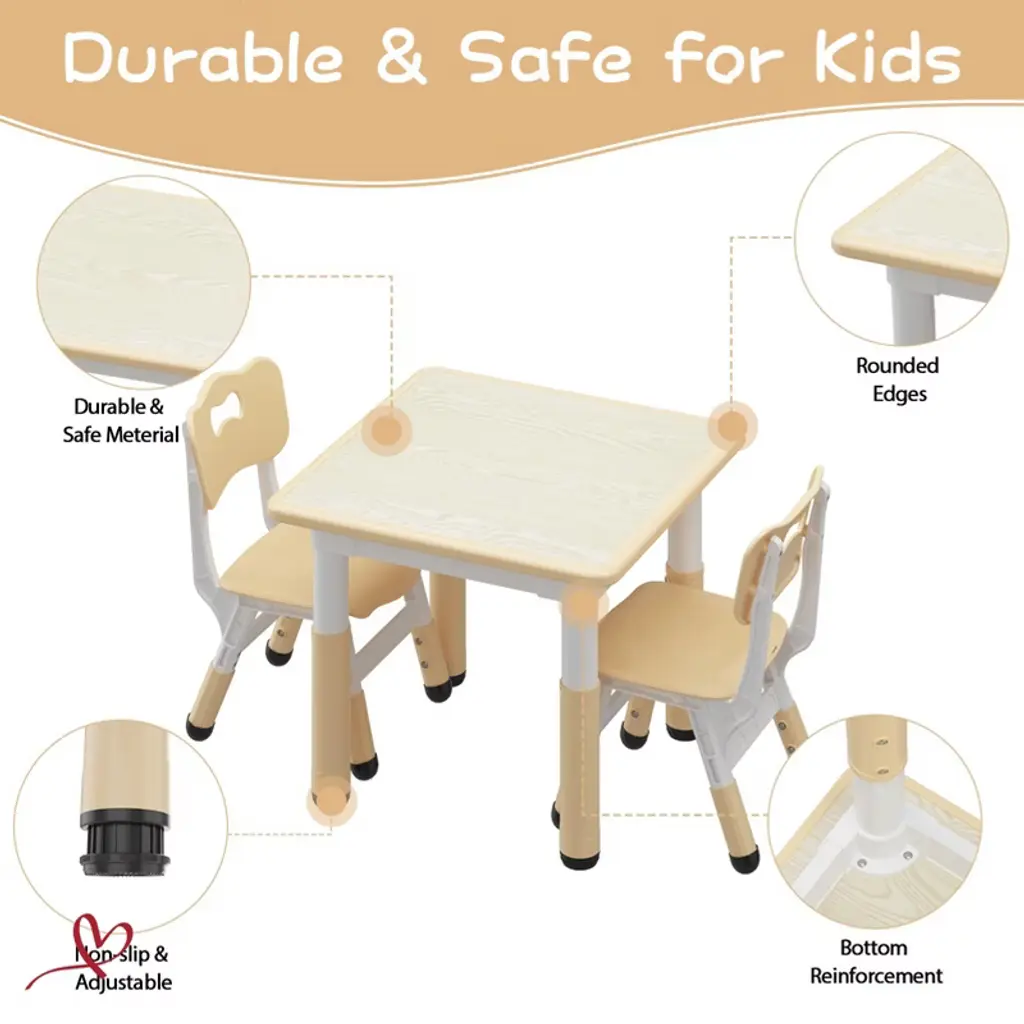 Kids Table and 2 Chairs Set, Height Adjustable Toddler Table and Chair Set for 2, Graffiti Desktop, Non-Slip Design, Children Table for Home Daycare Preschool for Ages 2-8, Beige/Gray Blue.