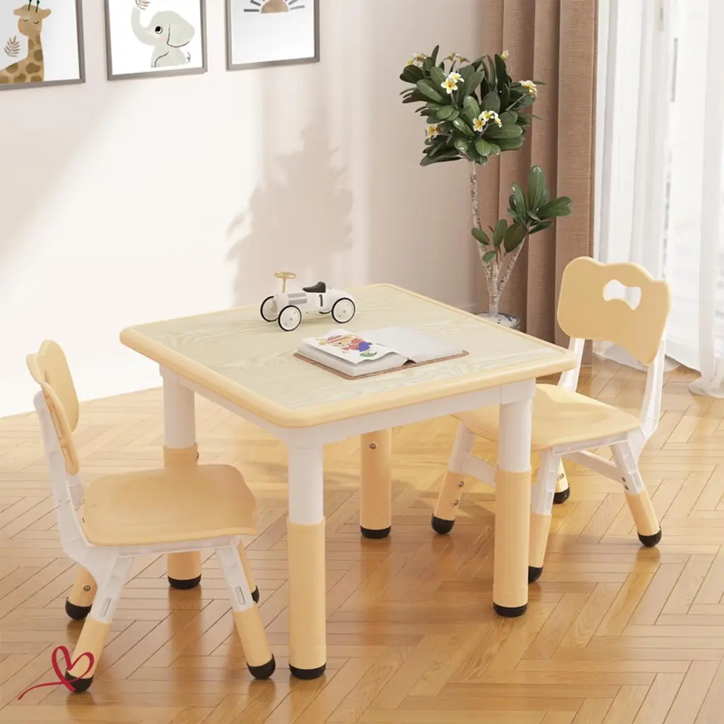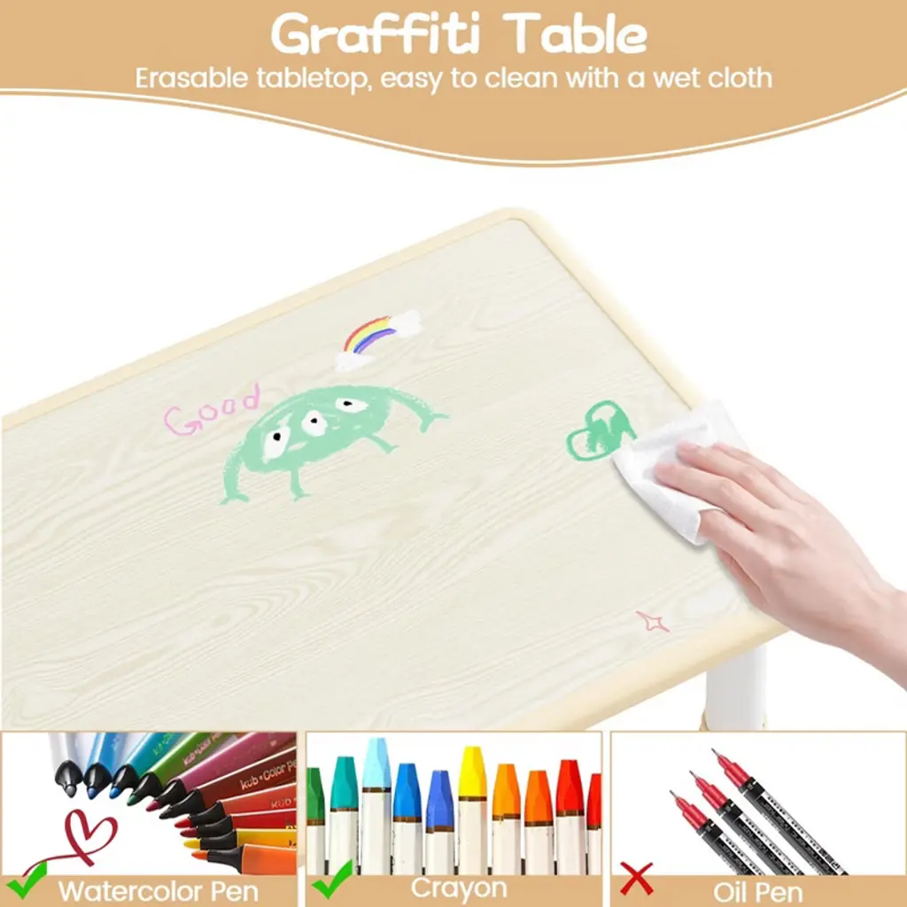 Kids Table And 2 Chairs Set W/graffiti Desktop Height Adjustable Toddler Table And Chairs Set For Reading Drawing, Playing, Eating