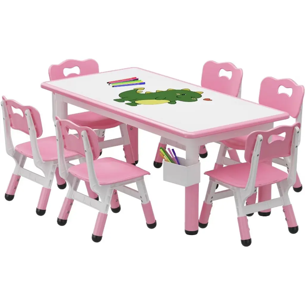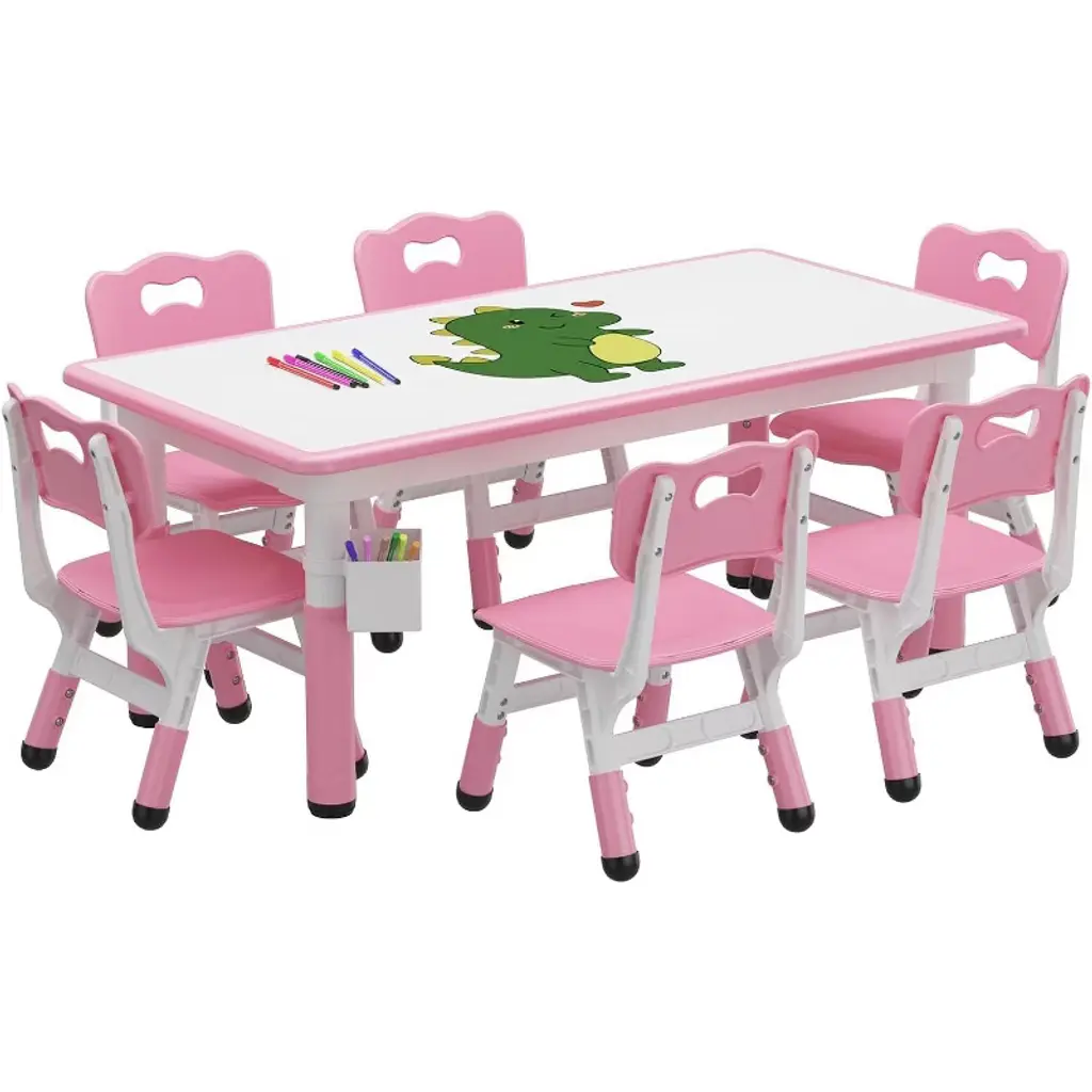 The kids table and chair set provides a creative space for children to draw, do crafts, eat, drink, study or do anything. Package includes 1 table, 2 chairs, and manual.