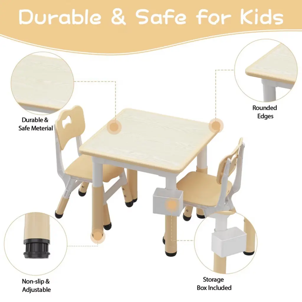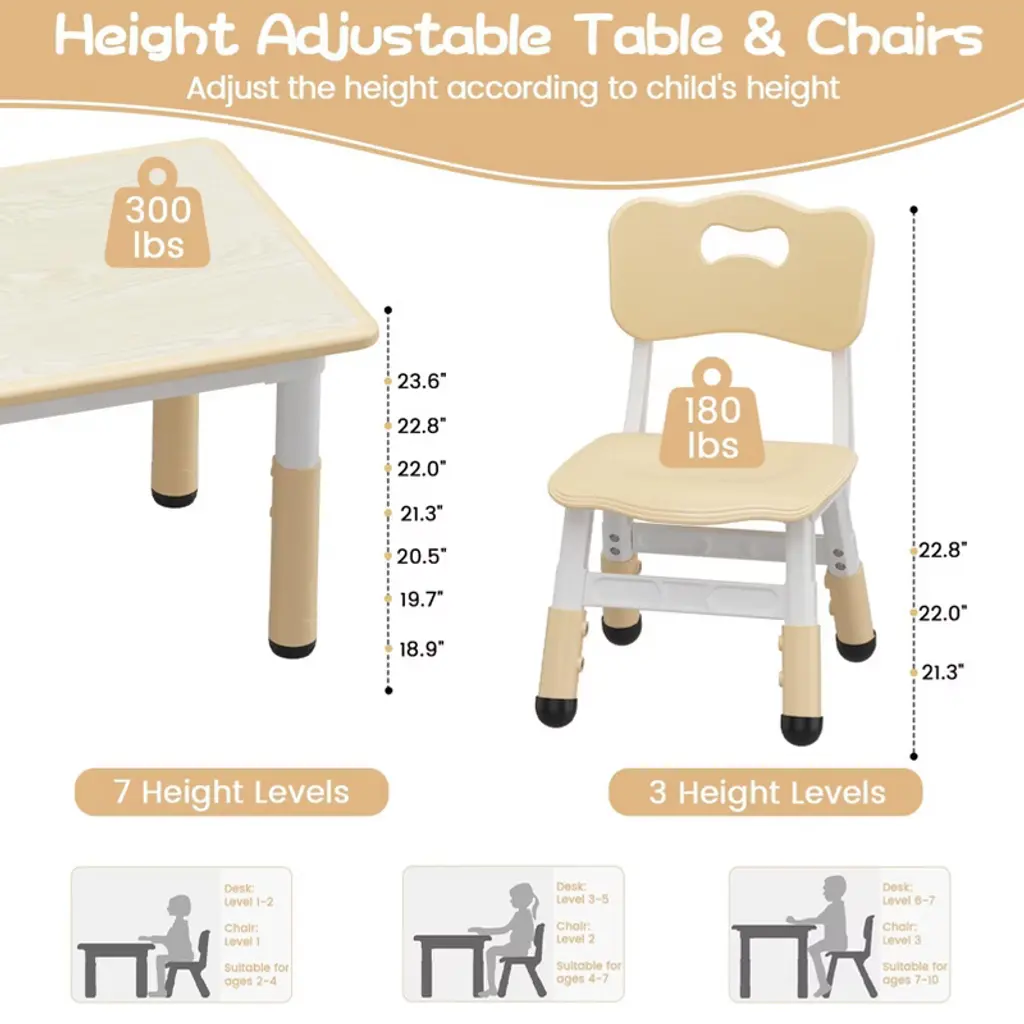 Kids Table and 4 Chairs Set with Graffiti Desktop, Height Adjustable Toddler Table and Chairs Set, Non-Slip Legs, 4 in 1 Play Table for Reading, Drawing, Playing, Eating