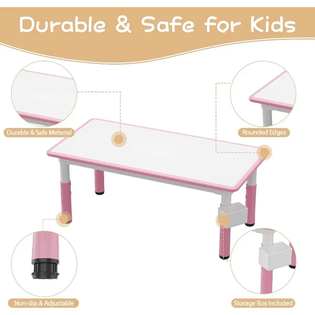 Kids Table and 6 Chairs Set, Height Adjustable Toddler Table and Chair Set, Graffiti Desktop, Children Study Table for 6 for Home Daycare Preschool for Ages 2-10, Pink