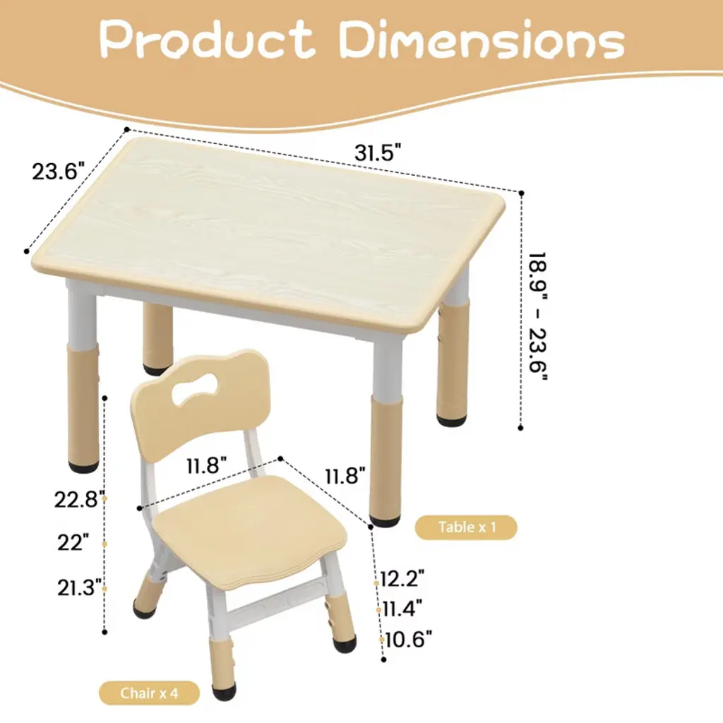 Kids Table And Chair Set, Height Adjustable Toddler Table And 4 Chairs Set For Ages 2-10
