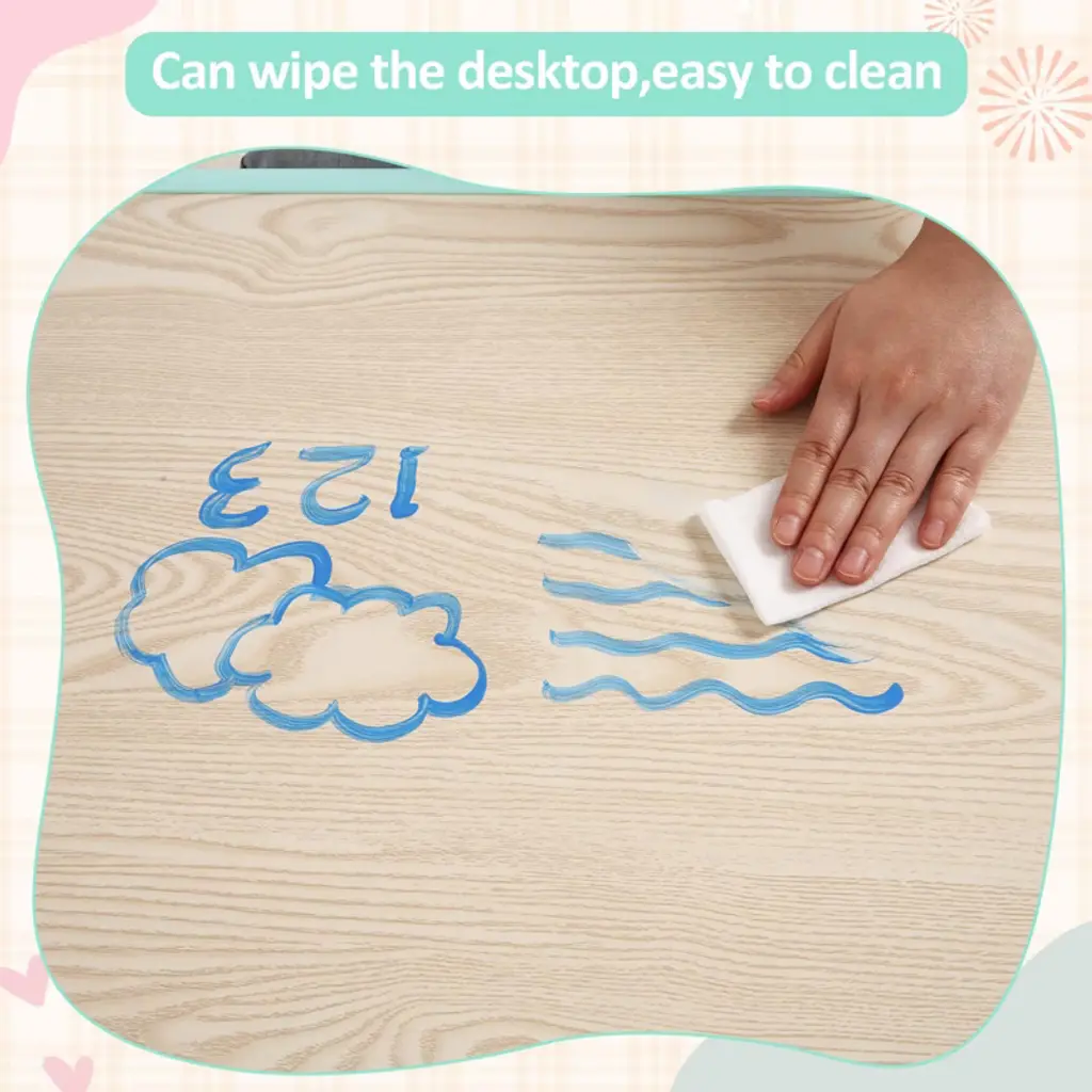 Kids Table and Chairs Set, Graffiti Desktop Plastic Children Art Table with Seat, Height Adjustable Toddler Table and Chair Set for Kids Ages 3-10