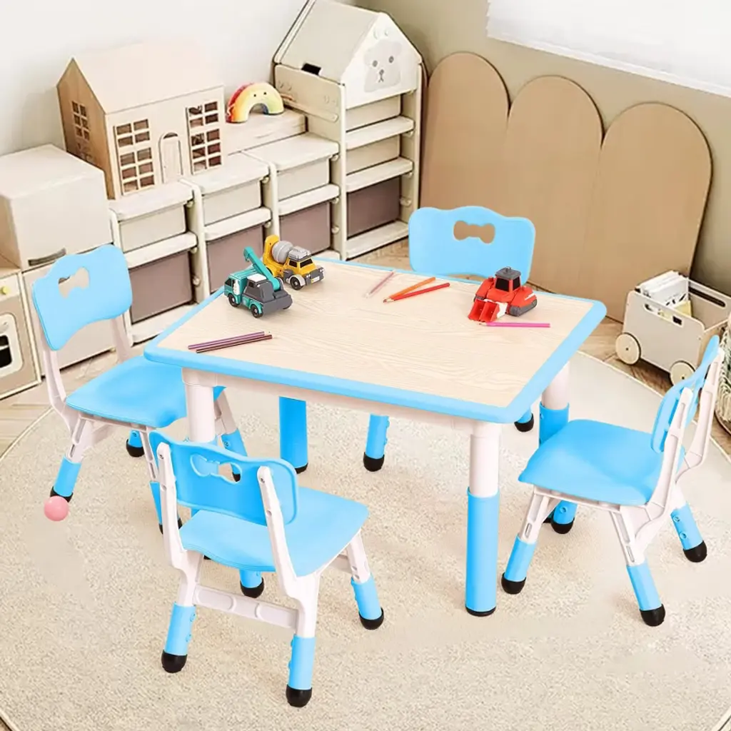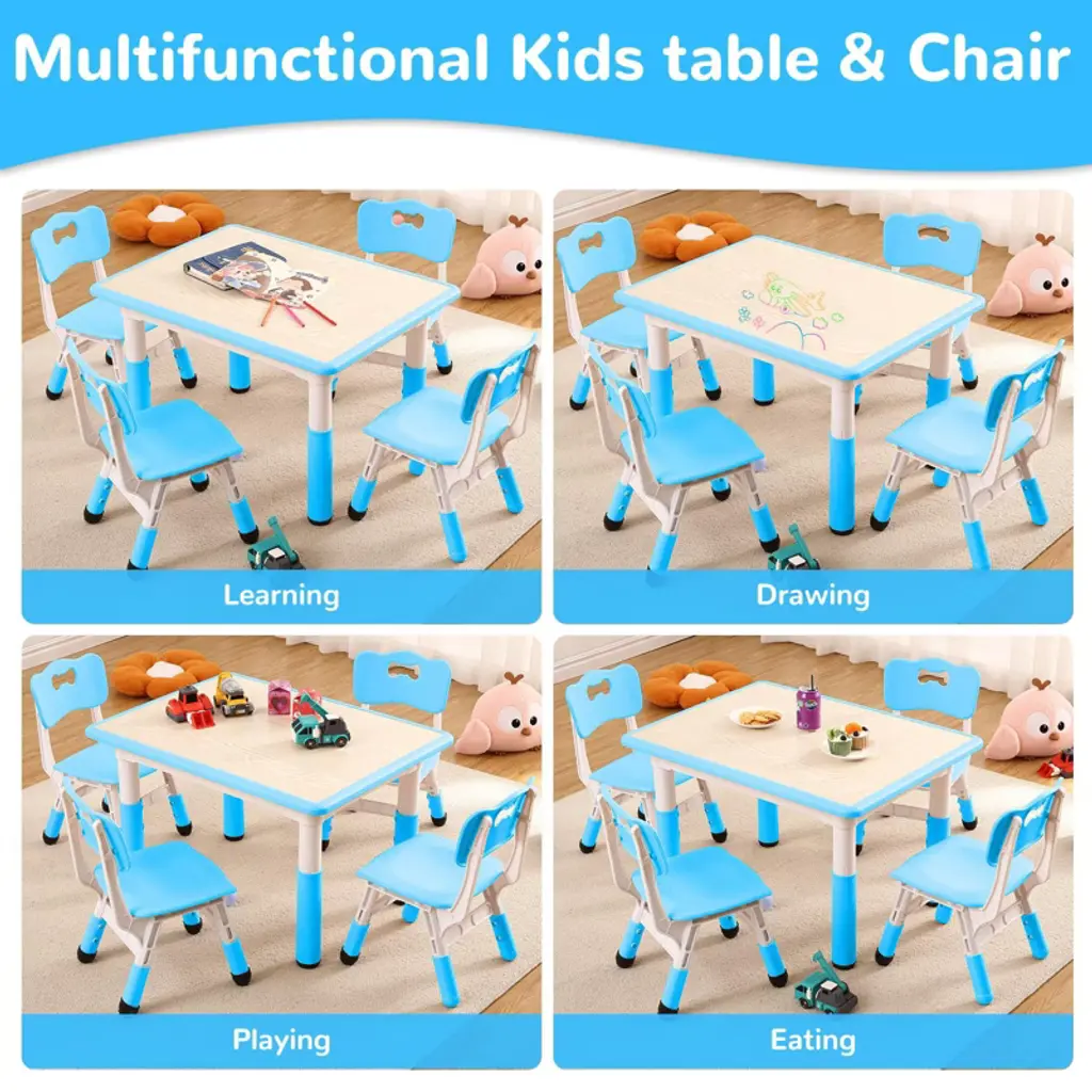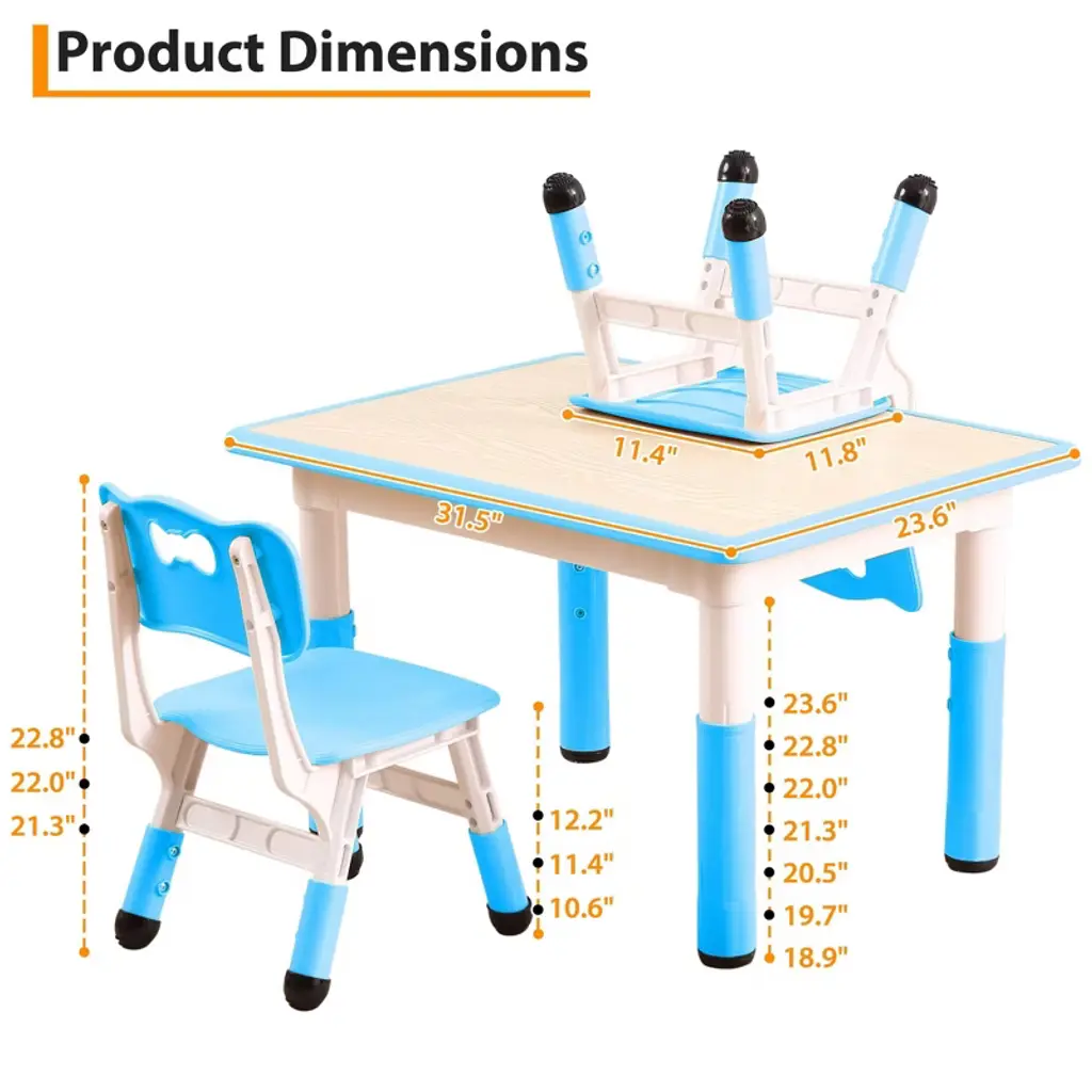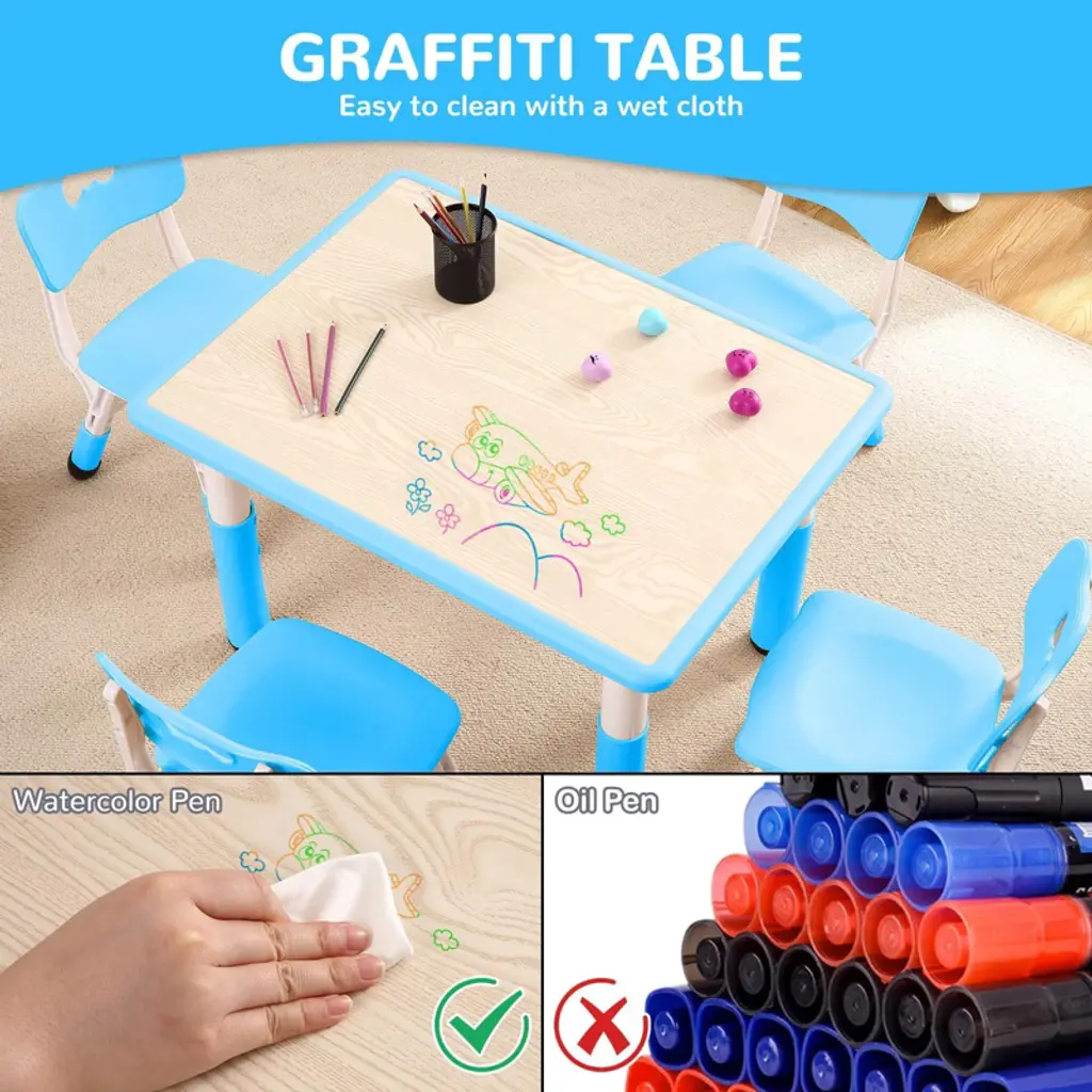 Kids Table and Chairs Set, Toddler Height Adjustable Desk with Graffiti Desktop, Arts & Crafts Table with 4 Seats, Non-Slip Legs, Max 300lbs, Suitable for Kids Table and Chairs Ages 2-10
