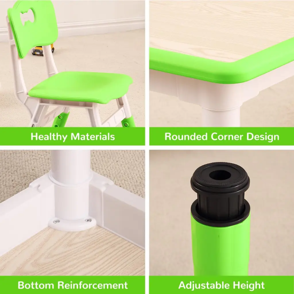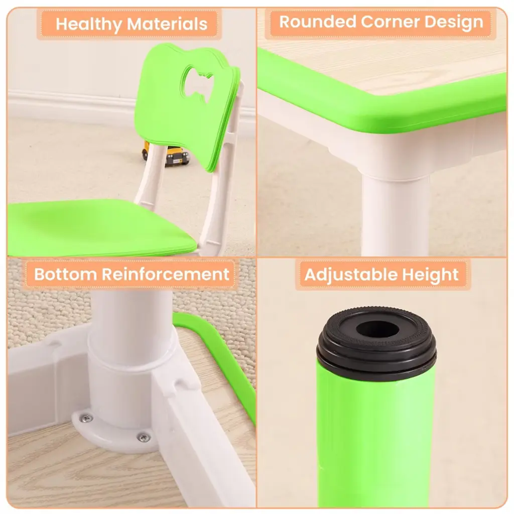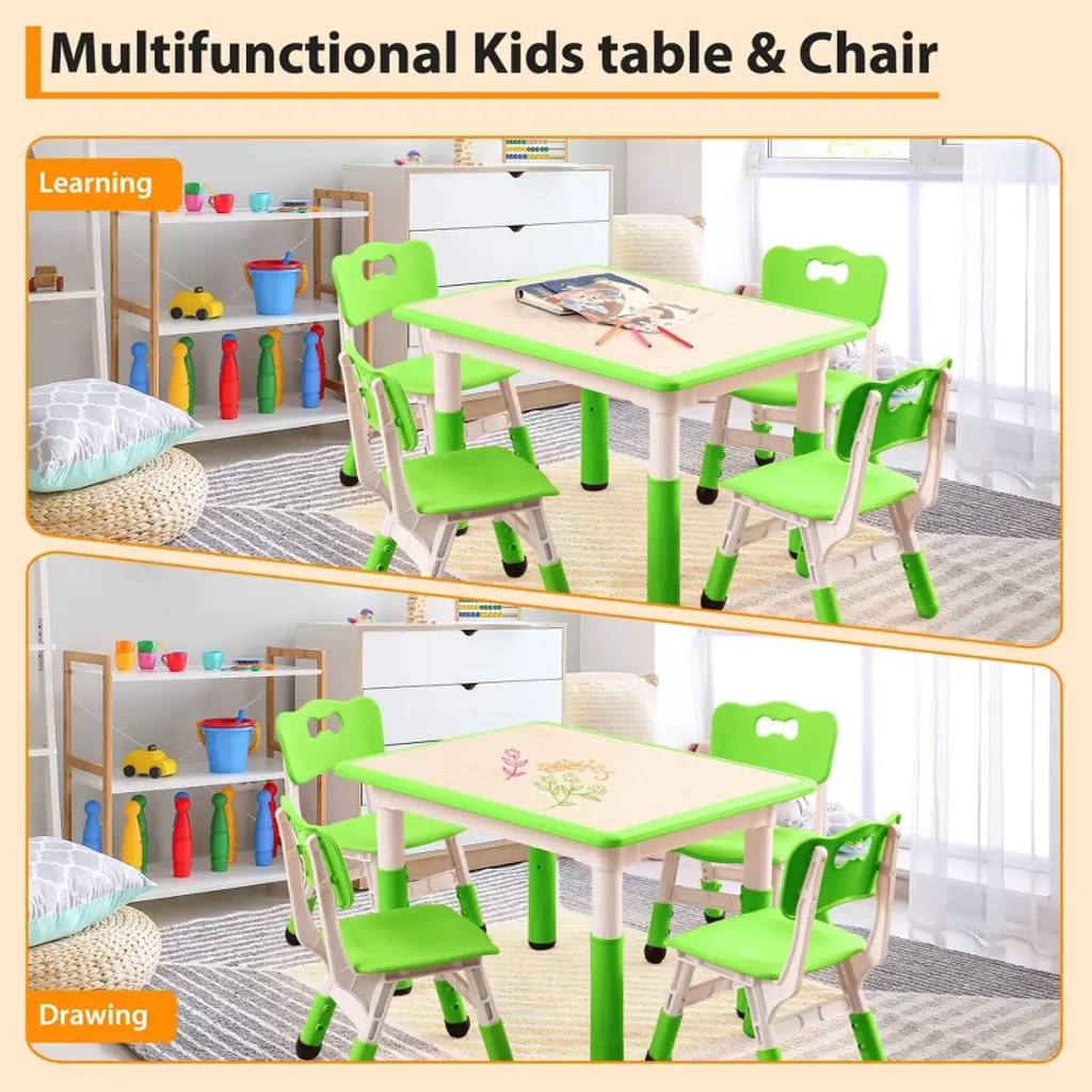 Kids Table and Chairs Set, Toddler Height Adjustable Desk with Graffiti Desktop, Arts & Crafts Table with 4 Seats, Non-Slip Legs, Max 300lbs, Suitable for Kids Table and Chairs Ages 2-10