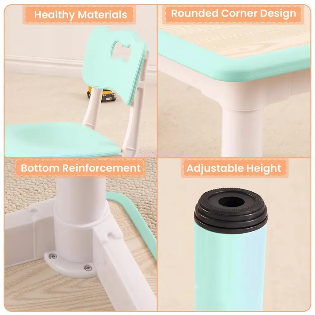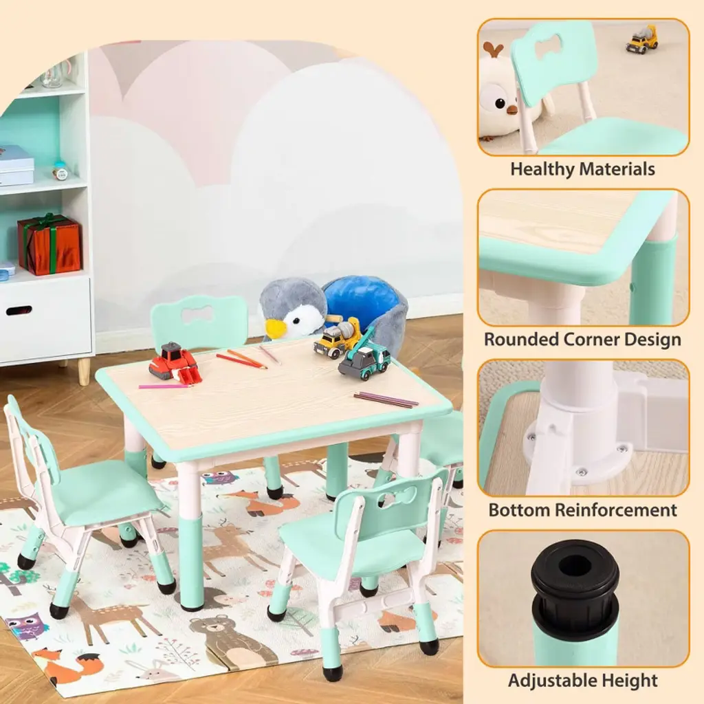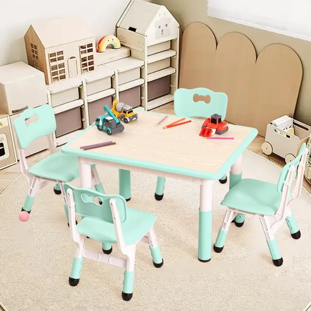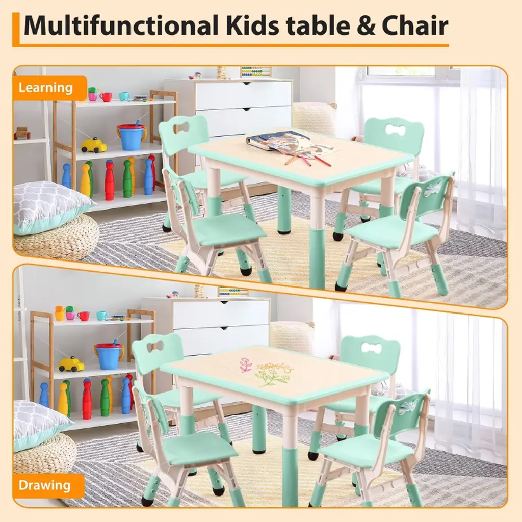 Kids Table and Chairs Set, Toddler Height Adjustable Desk with Graffiti Desktop, Arts & Crafts Table with 4 Seats, Non-Slip Legs, Max 300lbs, Suitable for Kids Table and Chairs Ages 2-10