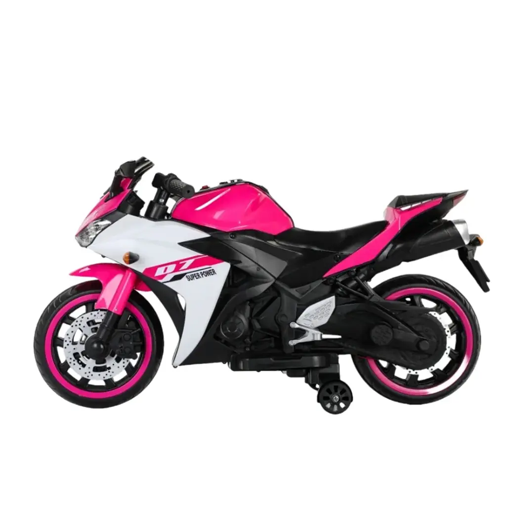 Kids Toys Electric Motorcycle With Headlight 12v Electric Ride On Motorcycle With Training Wheels Manual Throttle Drive - Pink