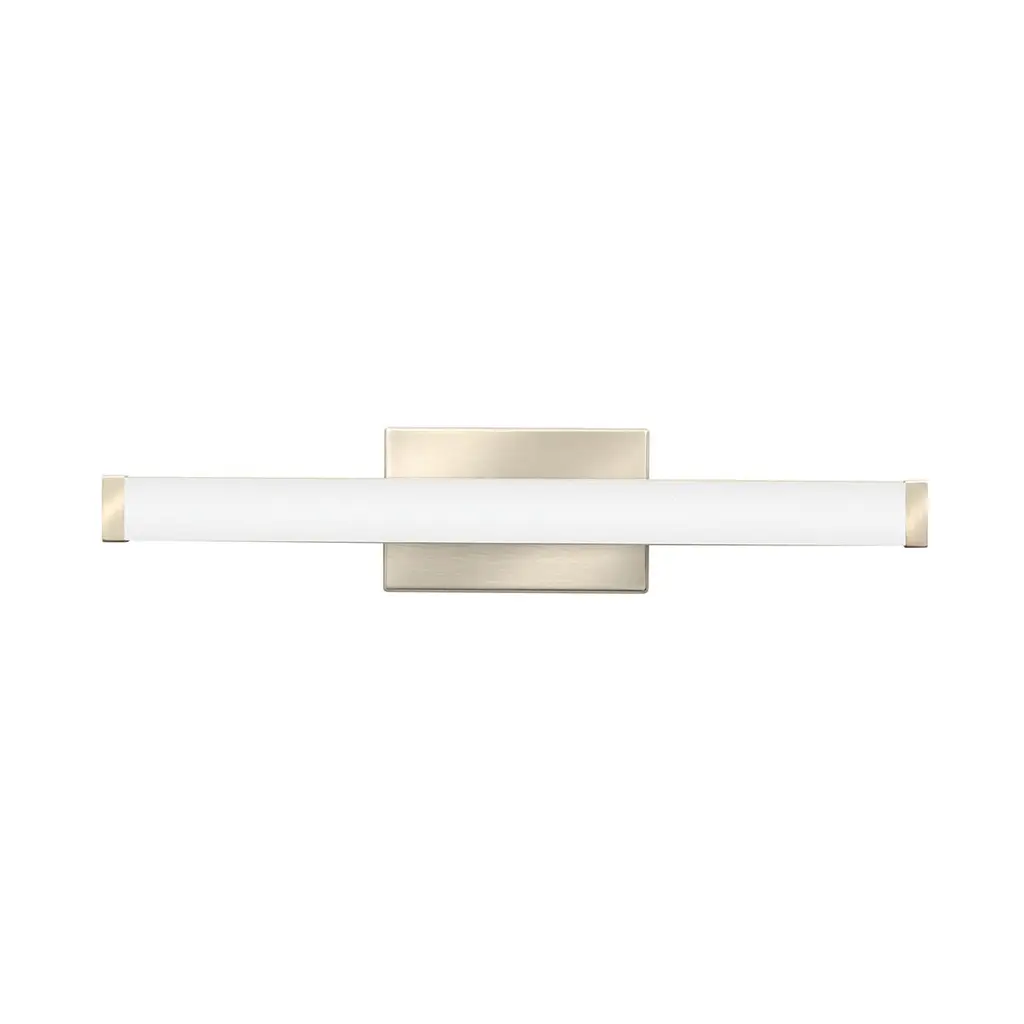 Sleek and modern, this Integrated LED bath series features a metal reflector that houses integrated LED stripes and gloss acrylic diffuser to distribute light evenly. The Kiel one light vanity fixture in Satin Brass provides abundant light for your bath vanity while adding a layer of today's style to your interior design.