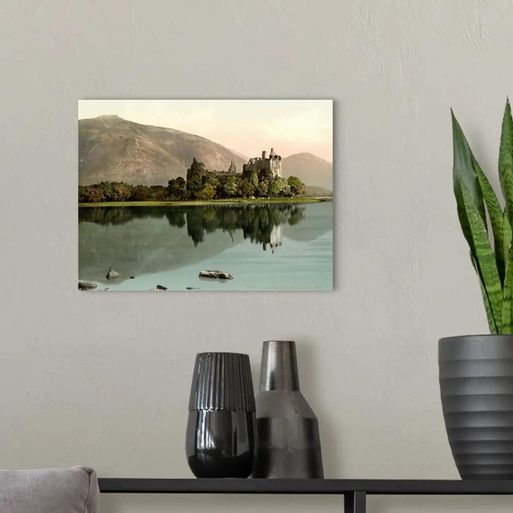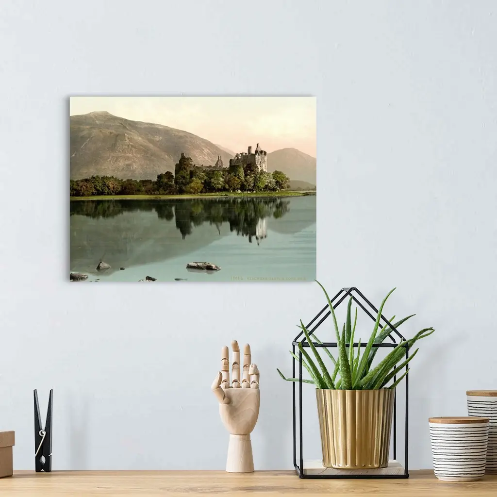 Hand colored photograph of Kilchurn castle, loch awe, Scotland.