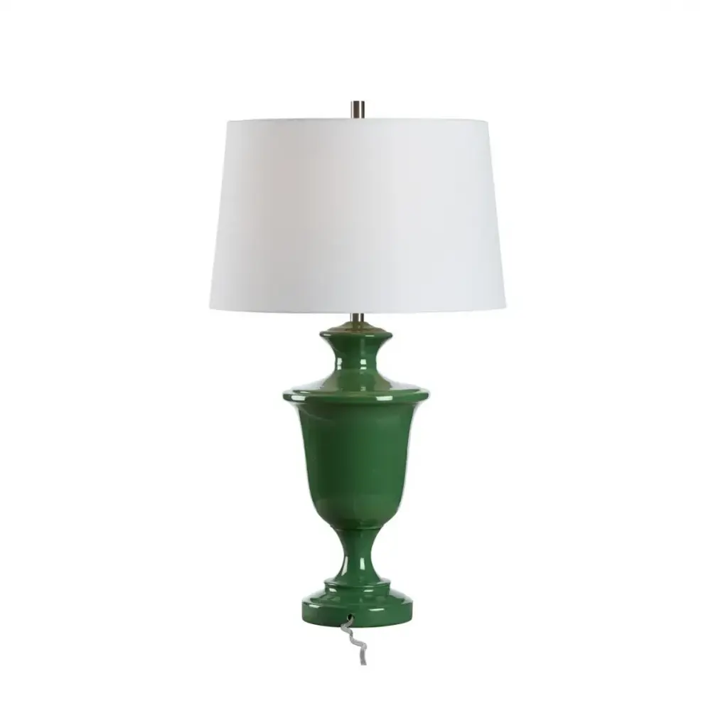 A true interpretation of a classic design for today's spaces, the ceramic Kilnbourne Lamp features a beautiful simplicity in a rich green finish.
