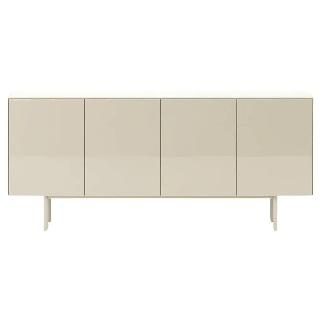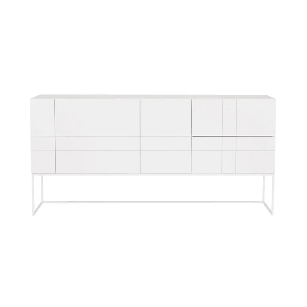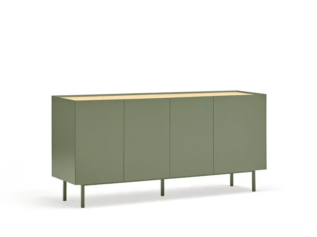 Swedish maker Asplund offers versatile storage with its Kilt Light sideboard 180 variation with space behind the 3 doors on the left as well as 2 drawers on the right. The striking pattern on the front of designers Claesson Koivisto Rune’s cabinet is suggested by classic tartan and conforms to proportions of the “golden ratio,” considered the most aesthetically pleasing. Splendidly crafted in Sweden, the lacquered MDF cabinet comes a range of calm Nordic tones and features an opening at the back for ventilation or cables. The cabinet’s powder-coated metal base can be selected to match or in a contrasting color.