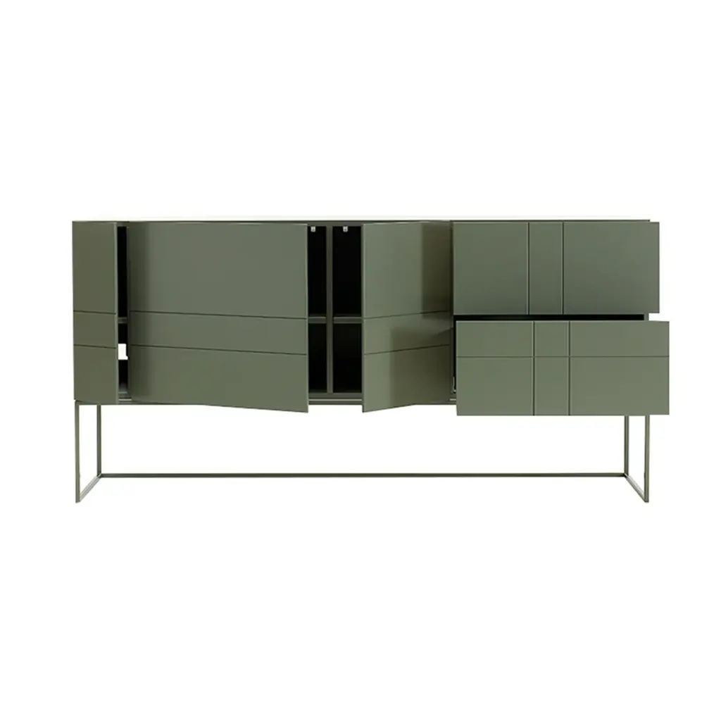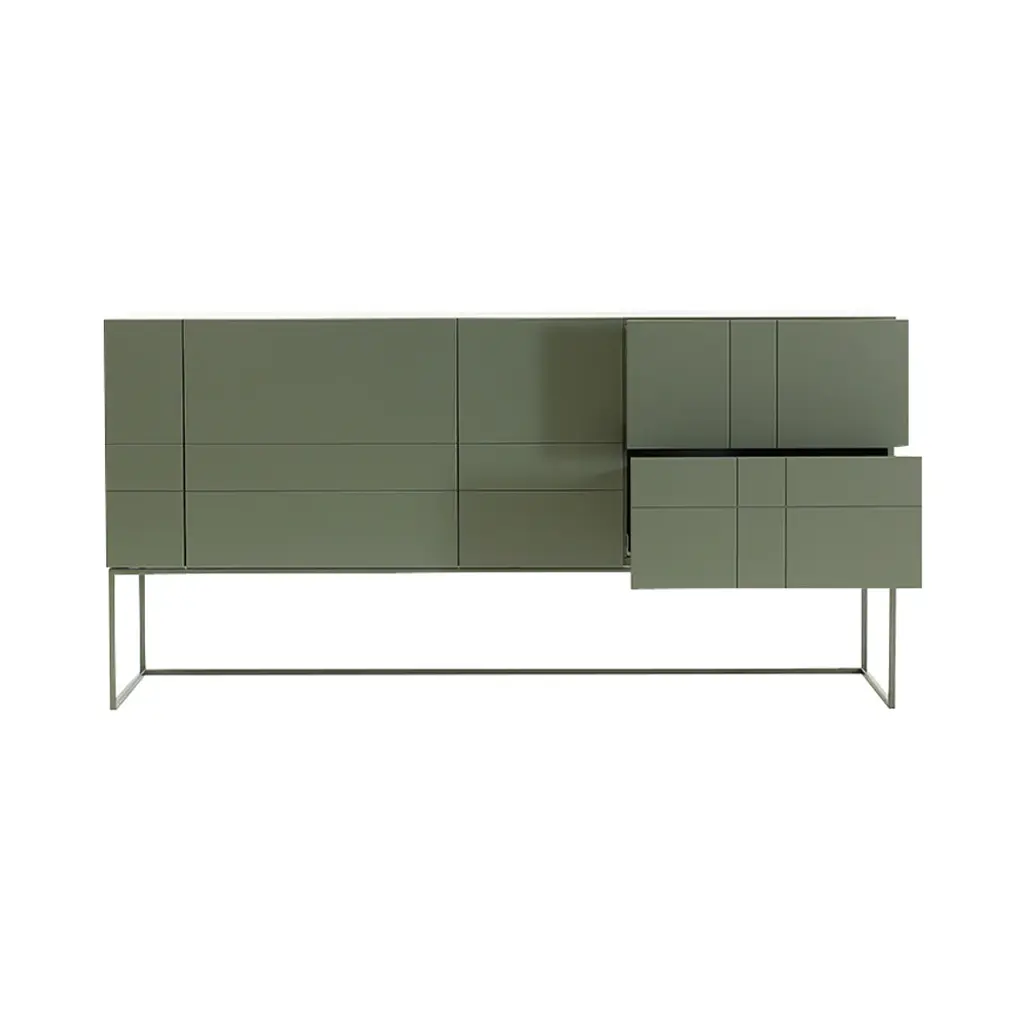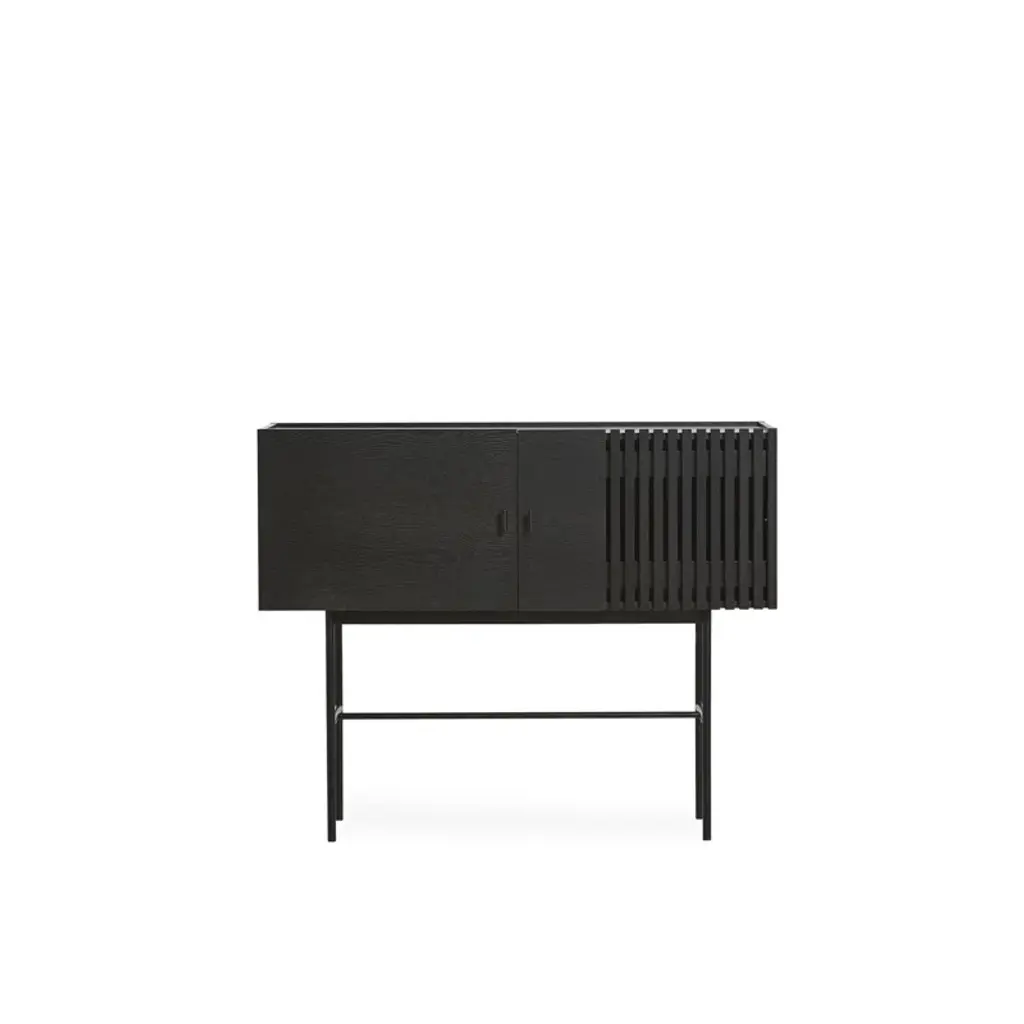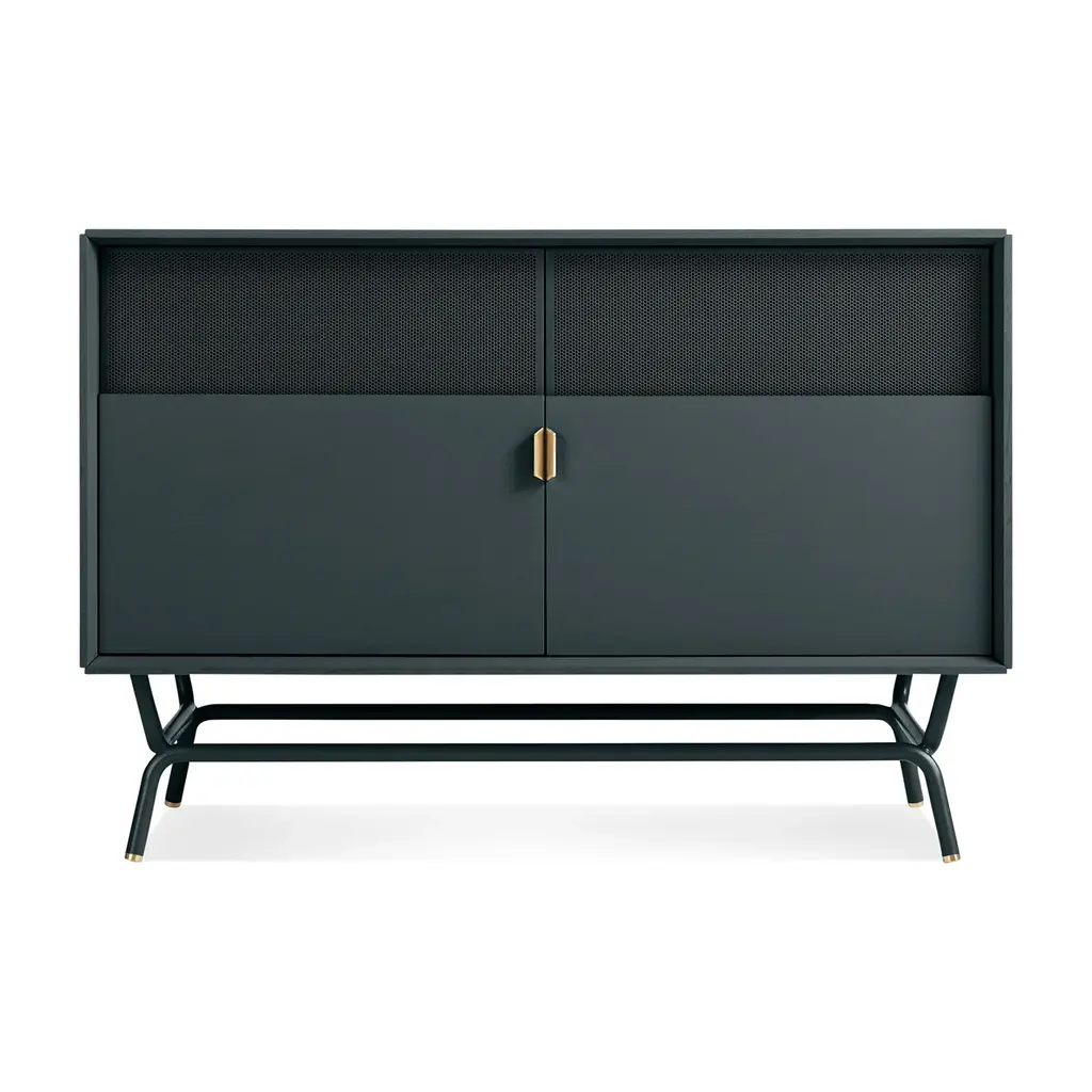 Swedish maker Asplund offers versatile storage with its Kilt Light sideboard 180 variation with space behind the 3 doors on the left as well as 2 drawers on the right. The striking pattern on the front of designers Claesson Koivisto Rune’s cabinet is suggested by classic tartan and conforms to proportions of the “golden ratio,” considered the most aesthetically pleasing. Splendidly crafted in Sweden, the lacquered MDF cabinet comes a range of calm Nordic tones and features an opening at the back for ventilation or cables. The cabinet’s powder-coated metal base can be selected to match or in a contrasting color.