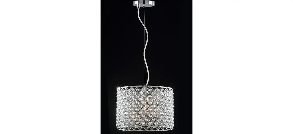 The minimalist interiors of the apartment of a top Italian designer inspired this contemporary chandelier. Ideal for the home of the modern jetsetter, its chic metallic chrome finish is paired with shimmering crystal beads in a diamond pattern.